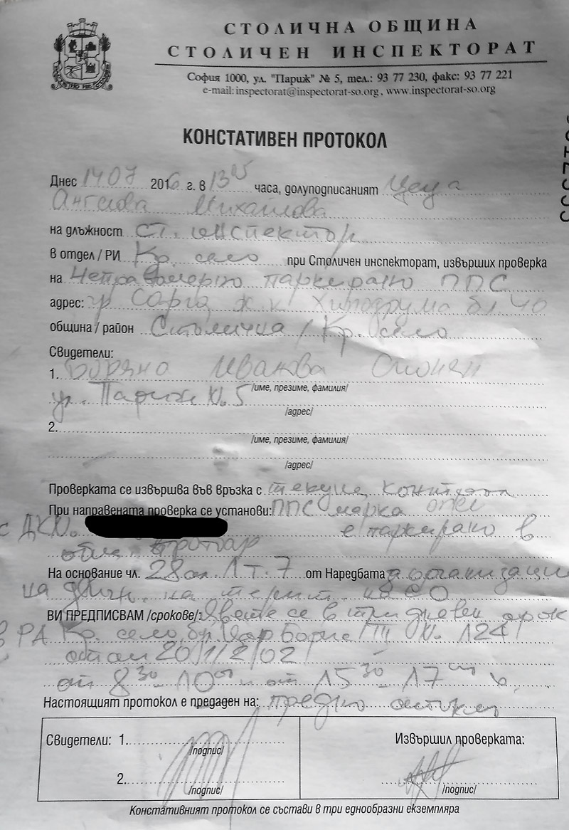 Re: Протокол за паркиране на тротоар