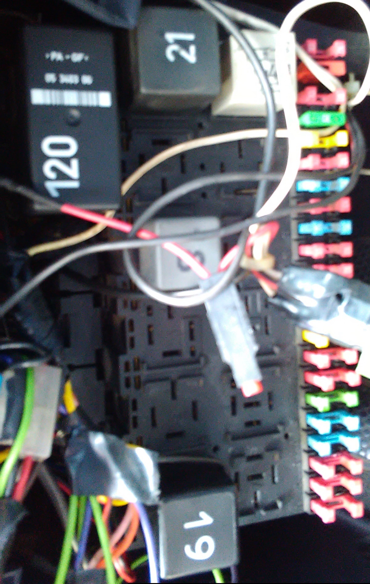 Схемата казва, че Vento от тия години трябва да има най-долу най-дясно реле 104, което отговаря за подгрева, а освен това горе да има 50А бушон над релетата. Реле 109/ 120/136 отговаря за контрола над релето на подгревните свещи и клапата за гасене на колата. Реле 109/120/136 трябва да се намира някъде горе.