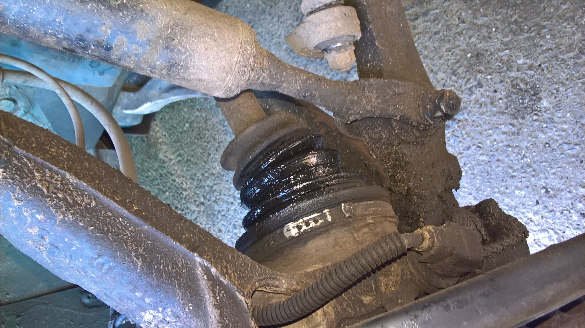 Скъсан маншон на карето, през който изтича грес. Ако се кара така, карето ще се повреди и ще бъде и то за смяна.