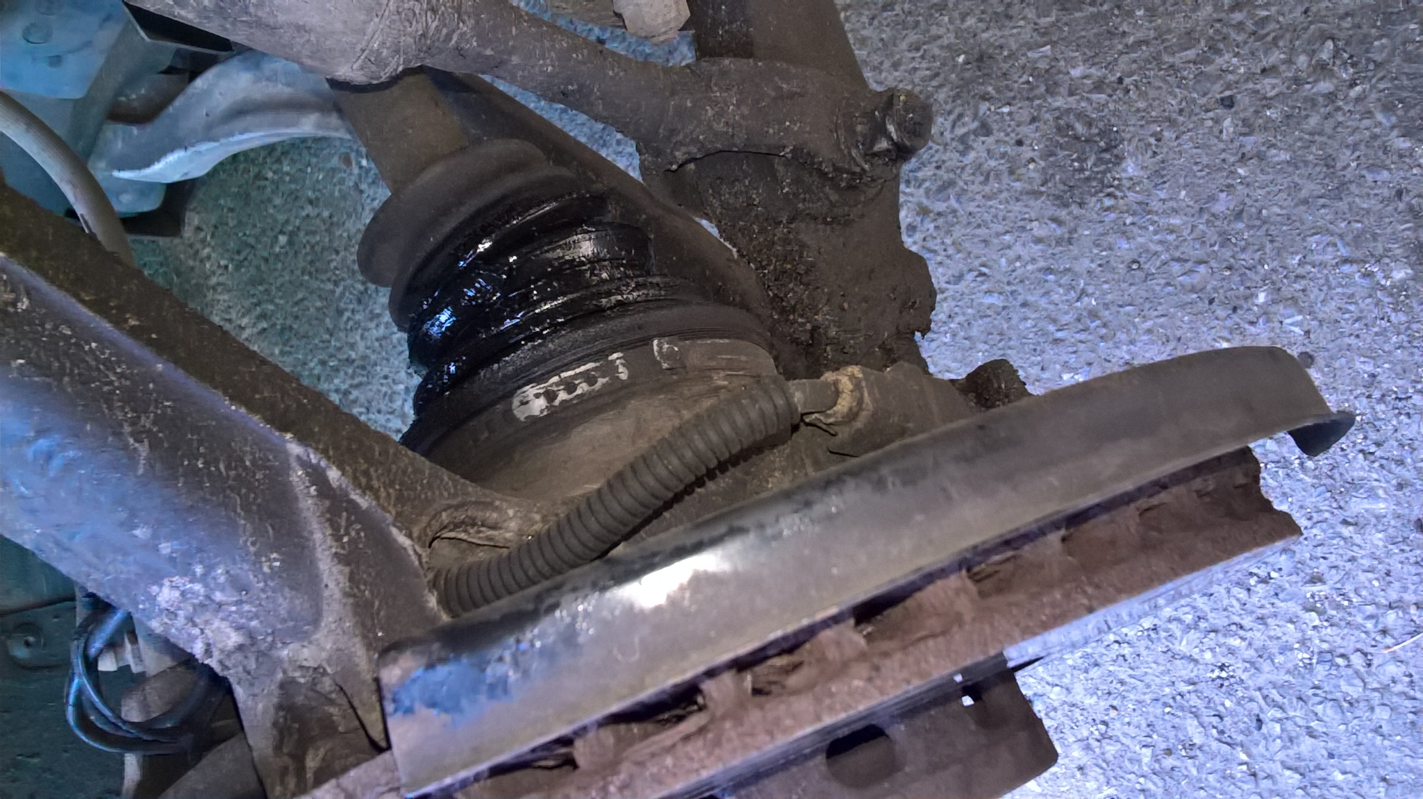 Скъсан маншон на карето, през който изтича грес. Ако се кара така, карето ще се повреди и ще бъде и то за смяна.