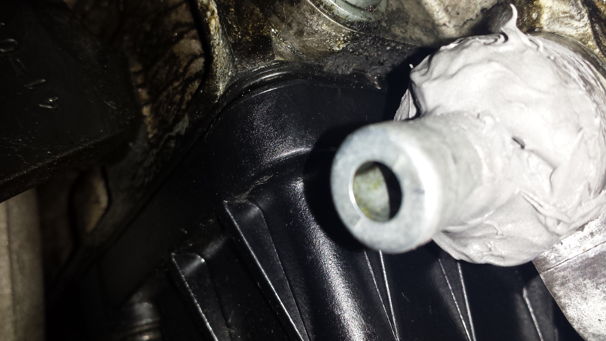 Другия проблем е разбития щуцер за вакума, който направих преди малко, по мързеливия начин без да свалям помпата. Обезмаслих и забърсах хубаво, после я намазах хубавичко с течен метал... Още не бях намазал навсякъде и лепилото изсъхна защото двигатела беше топъл. Втория път по-хубаво го намазах, изчаках половин час и леко стегнах скобичката. Утре ще тествам как са спирачките и вървежа, но щуцера не помръдва.