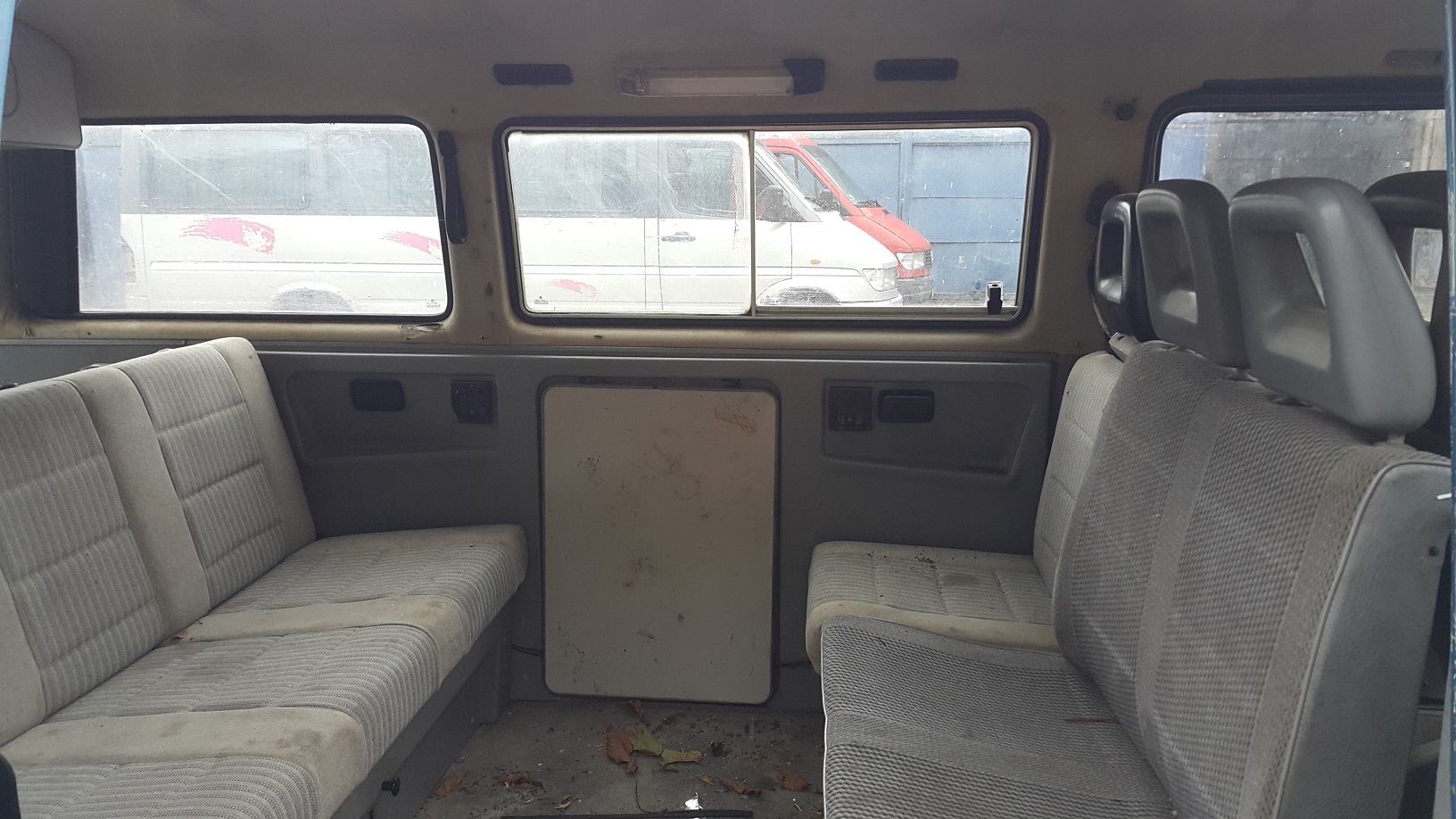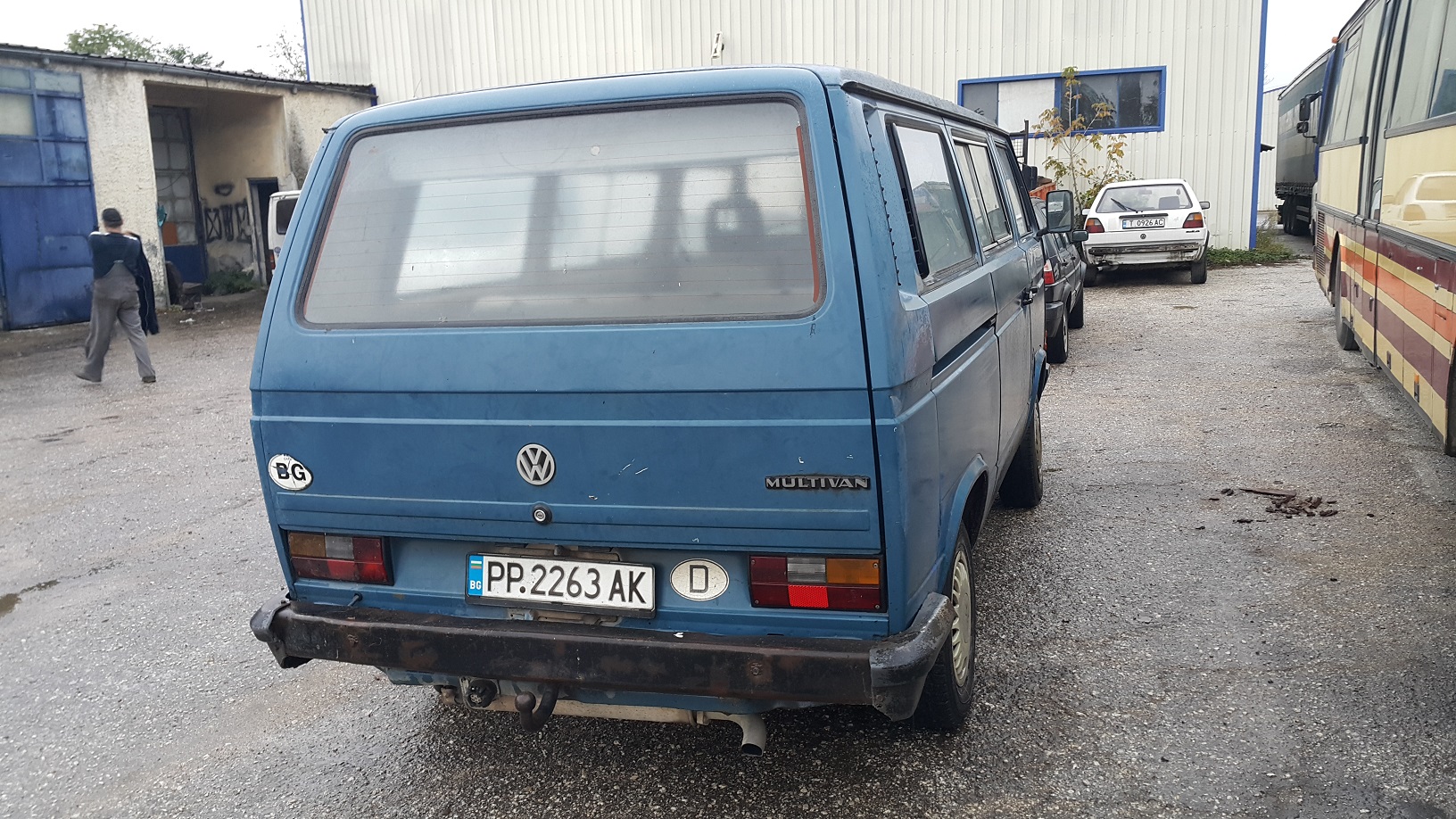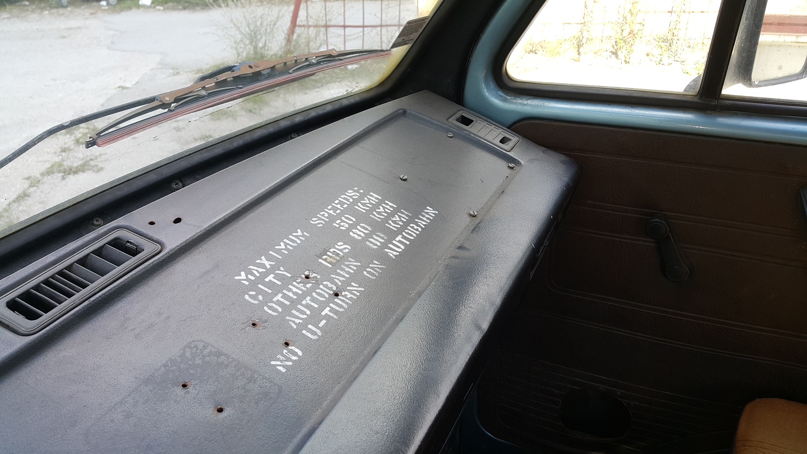 А това са малко снимки на новата, която не мога да разбера дали е била Каравел или Мултиван. Има различни неща от другата, която си е обикновена. Явно буса е бил военен, което може да е помогнало да се запази, защото няма изгнило никъде, естествено има и разни странни надписи по таблото и отдолу под синята боя има матова зелена. Тази зима ще сменя мотора, а на пролет ще има нова боя и покритие на дънцето. Още е на никъде, но пък има заплюти лети джанти 15" от Мерцедес