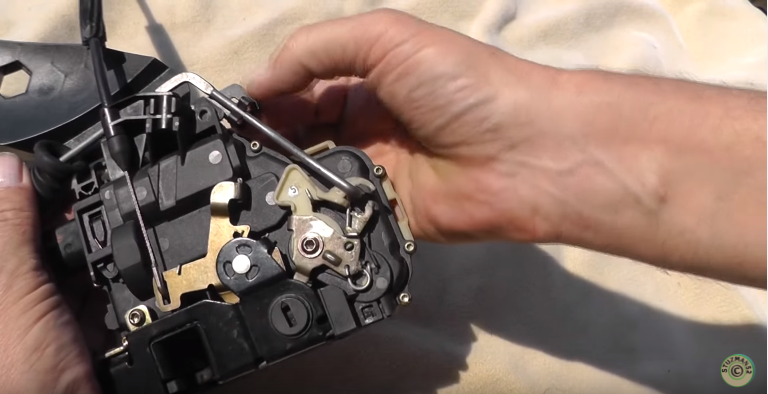 Веднъж свалиш ли бравата може да погледнеш за двете пластмаси движещи механизма за заключване, ще прикача снимка по-доло и ще ги очертая в червено. Моят съвет е щом свалиш бравата да я отвориш, почистиш и смажеш, след което да презапоиш спойките по платката.