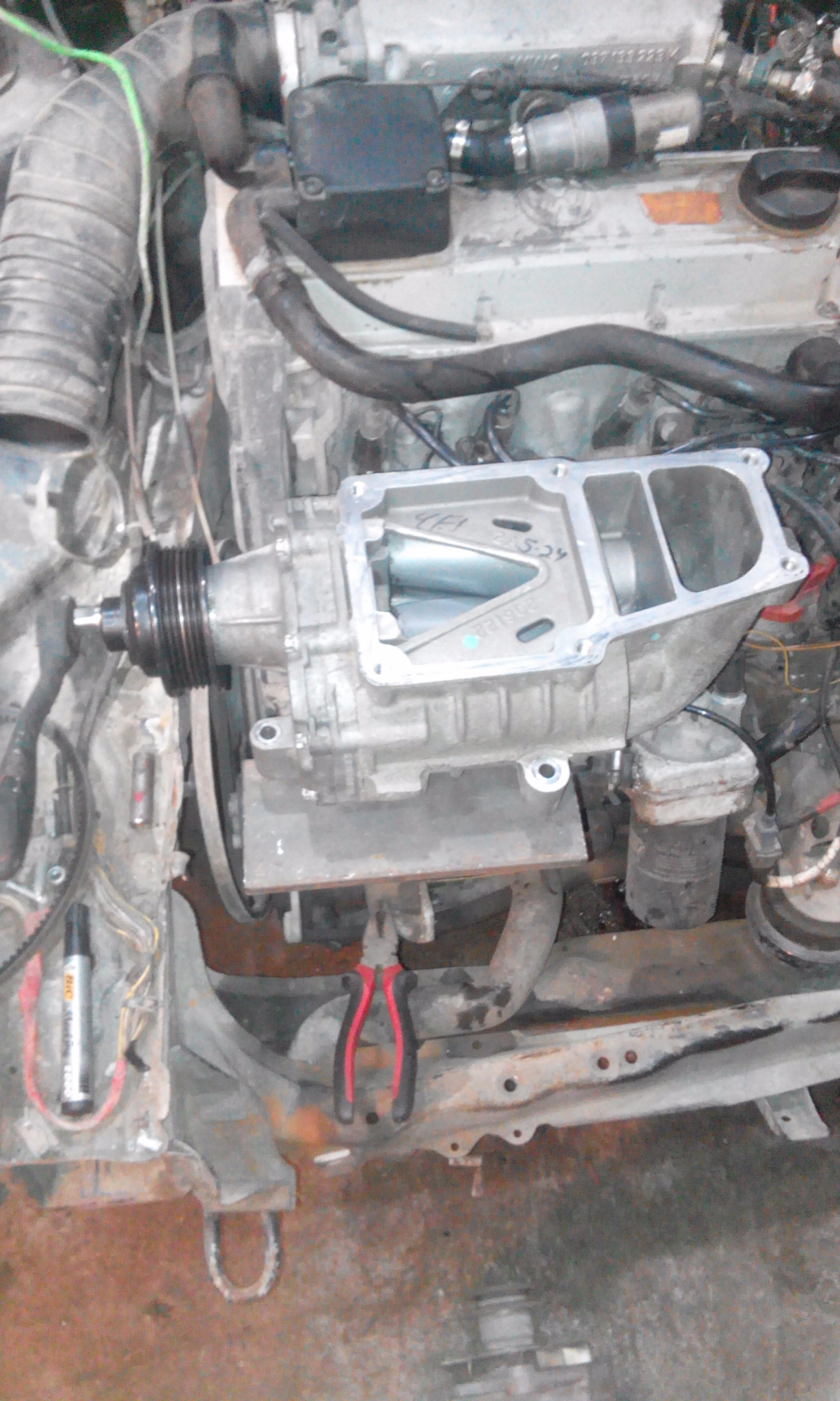 Здравейте колеги, хванал съм се да осъществя този така непопулярен проект като от тук малко от там малко и съм събрал горе долу нужната ми основна информация. Крайната цел не е супер бегачка, а просто достатъчно пъргава евридейка която да доставя удоволствие от шофирането. Компресорът е Йитън М45 съотношението на шайбите е 2 към 1 като за сега ще остане така докато не сглобя всичко и да видя колко загуби ще има и след кулера за да мога да сметна каква шайба да поръчам.