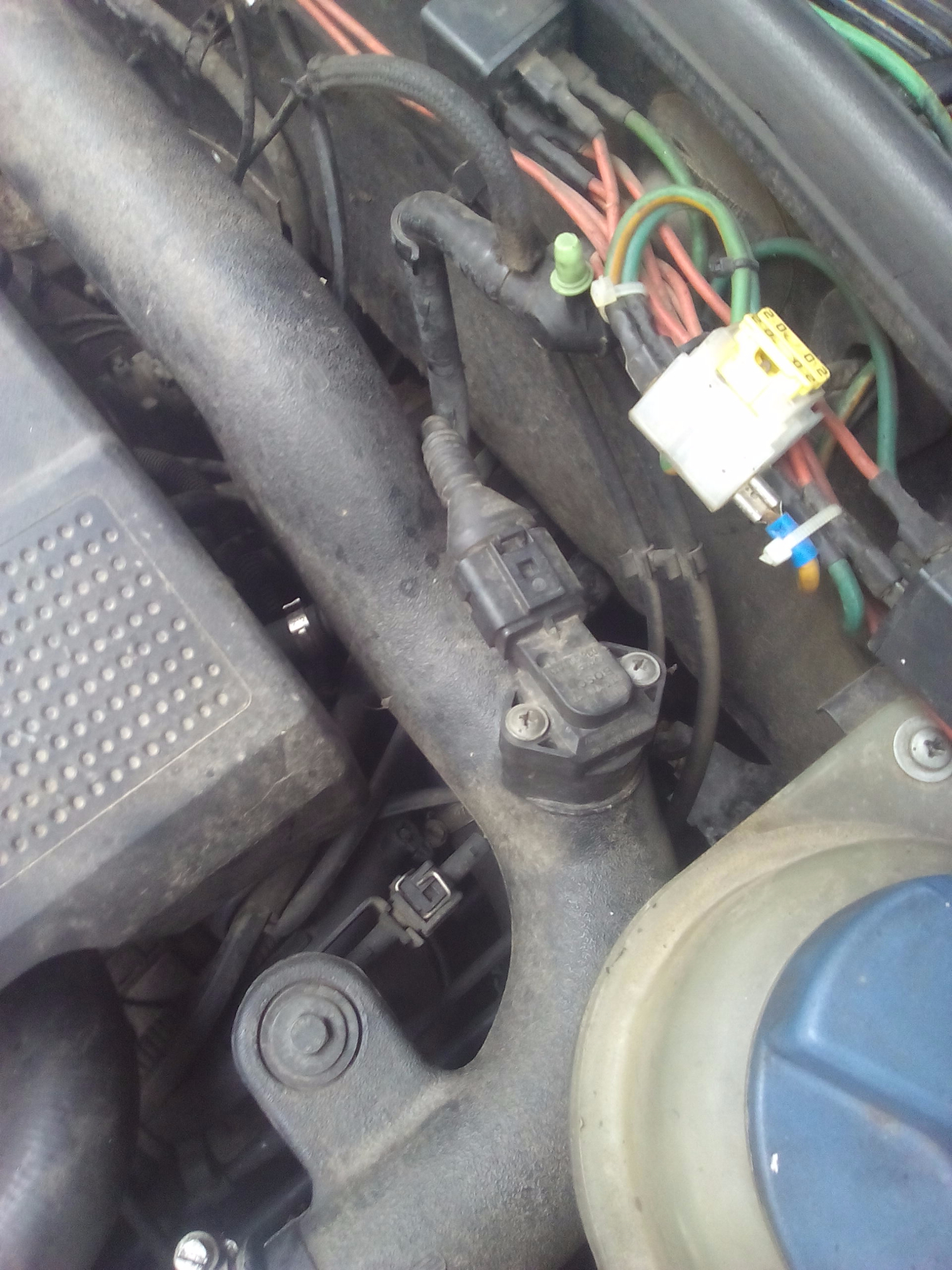 Според мен съм с втория вариант с външен мап утре ще го снимам,защото към кутията на ЕКУ влиза покрай казанчето за антифриза нещо подобно на гуфриран маркуч черен и доста дебел,а под казанчето в основата му влизат доста кабели и единия отива към тръбата която е между кулера и всмукателния колектор,а самата тръба е пластмасова с вграден в нея датчик (може ми) с букса към него.Ако съм както при Ауди тогава имам ли вакум на ЕКУ или е по друг начин.