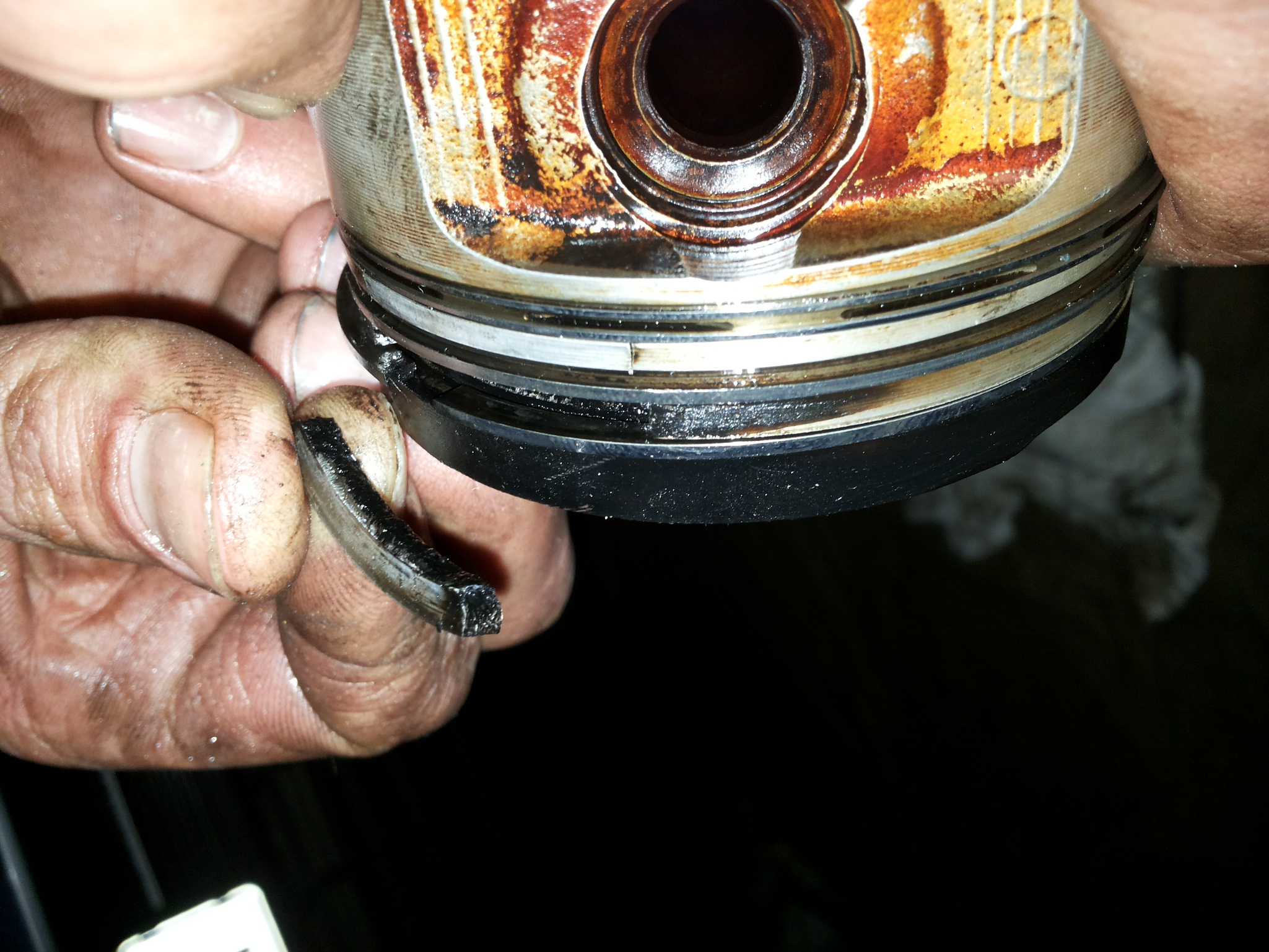 А сега да продължа с историята. Та стигна се до повторно отваряне на двигатела, защото чукането стана доста силно и почна пак да гори масло. И се оказа, че всички бутала са имали близка среща с главата, че даже и счупено парче от буталото на четвърти цилиндър.