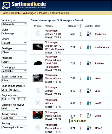 Намерих резултати за средния разход на Alltrack B7 2012 170ps BMT 4M DSG6: