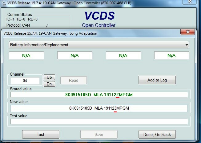 Прочетох в този http://www.audizine.com/forum/showthread.php/459276-How-complicated-is-it-to-replace-the-battery-on-a-B8-A4/page7 форум, че и в Канада си купуват AGM акумулатори от магазина и понеже те нямат BEM код, както стана ясно, увеличават с едно номера в кодирането: