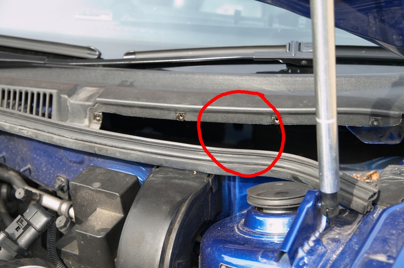 1. Запушени обтекателни канали на отсека под прозореца (при чистачките). Сваля се кората под чистачките, като за целата се свалят и рамената на чистачките и се почистват листа и кал натрупали се в двата ъгъла на въпросната кухина. Като цяло поливай добре с вода и ще видиш къде точно се изтича. Препоръката ми е да отвориш и подкалниците в долният заден ъгъл и да почистиш и там, с годините се трупа доста боклук.