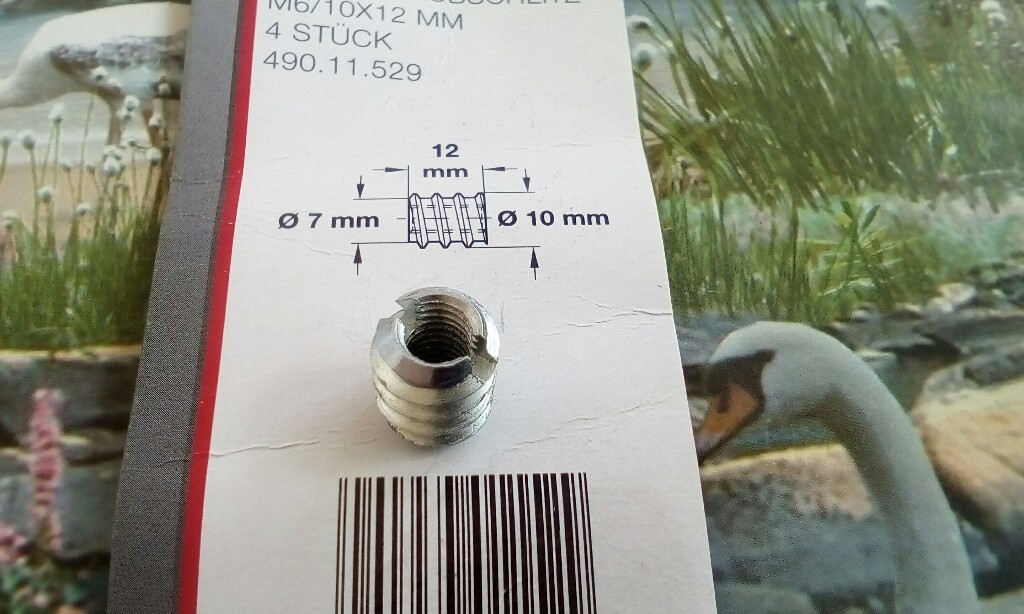 Втулките са с дължина 12 мм., външна резба Ф10 и вътрешна Ф6. Използвах и болтове за метал М6х12.