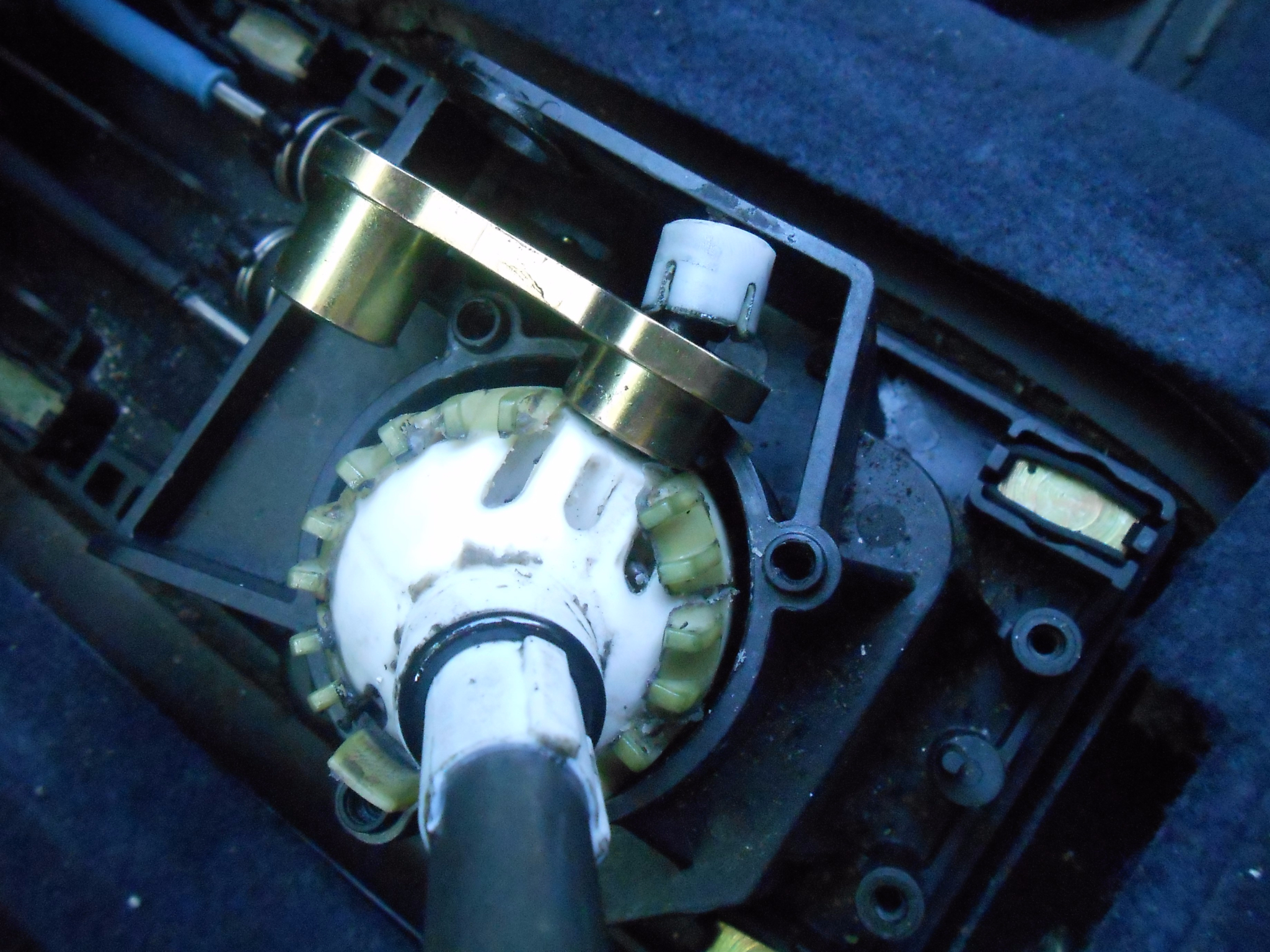 Аз го уплътних с две свински опашки и то отгоре като стегнах заедно с гумения пръстен, лоста е стегнат ама пак на първа по някой път е включване на две степени.