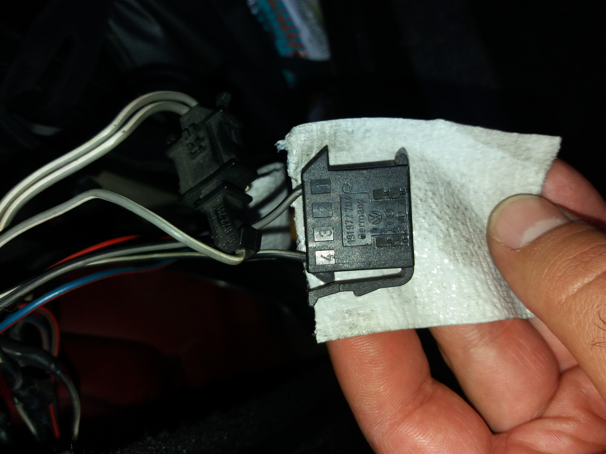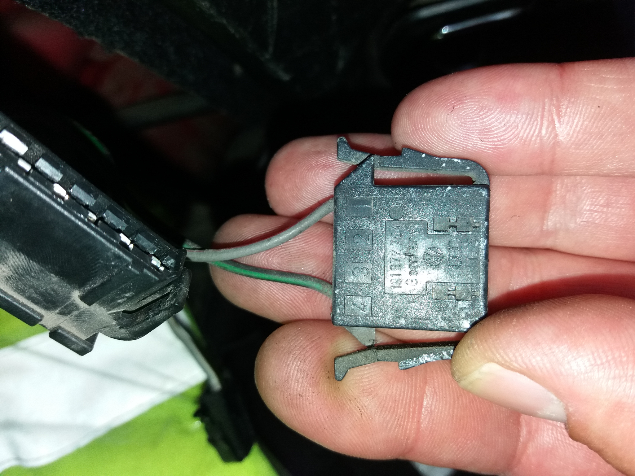 Махнах корите от зад и видях че на двата стопа има букси, които просто си висят, бърз тест с пробна лампа показа че едната от буксите пуска + когато се пуснат задните халогени от копчето за фаровете, но само на десния стоп.