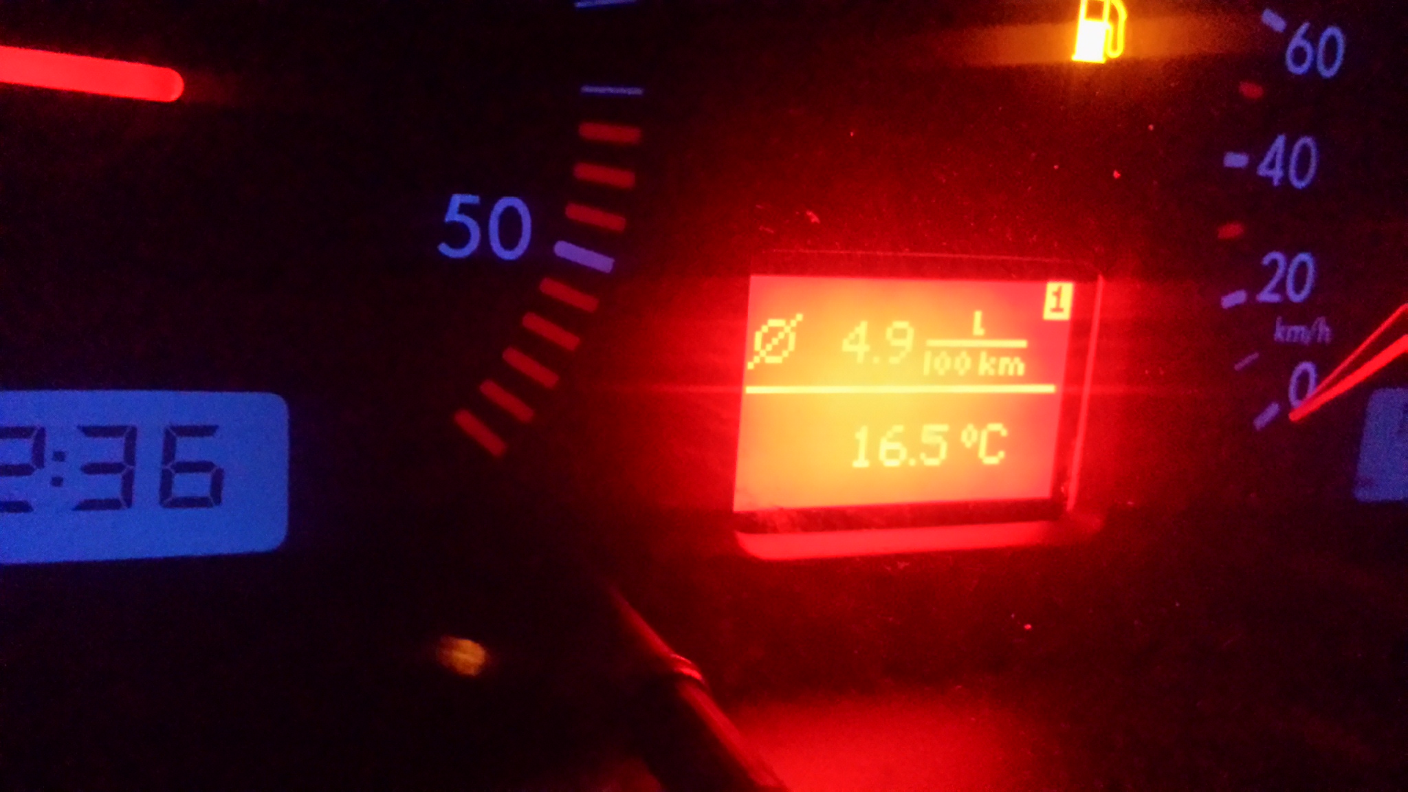 Пълно-пълно с 57 литра - 980км. (976 да сме точни) от които 240 извънградско на магистрала 130км/ч средна скорост (под 120 не слизах, на 5-6 пъти със над 140 по 2-3 км).