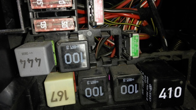 Релето е J271 и захранва с 12V ECU. VAGCOM го сочи като дефектно. За моя случай това е реле 30, намиращо се в кутията на ECU. Тъй като визуалният оглед на релетата не е надежден метод за проверка без по-сериозни измервания, за да не си губя времето просто смених релето с ново. Засега, вече повече от седмица, дефектът не се е проявил.