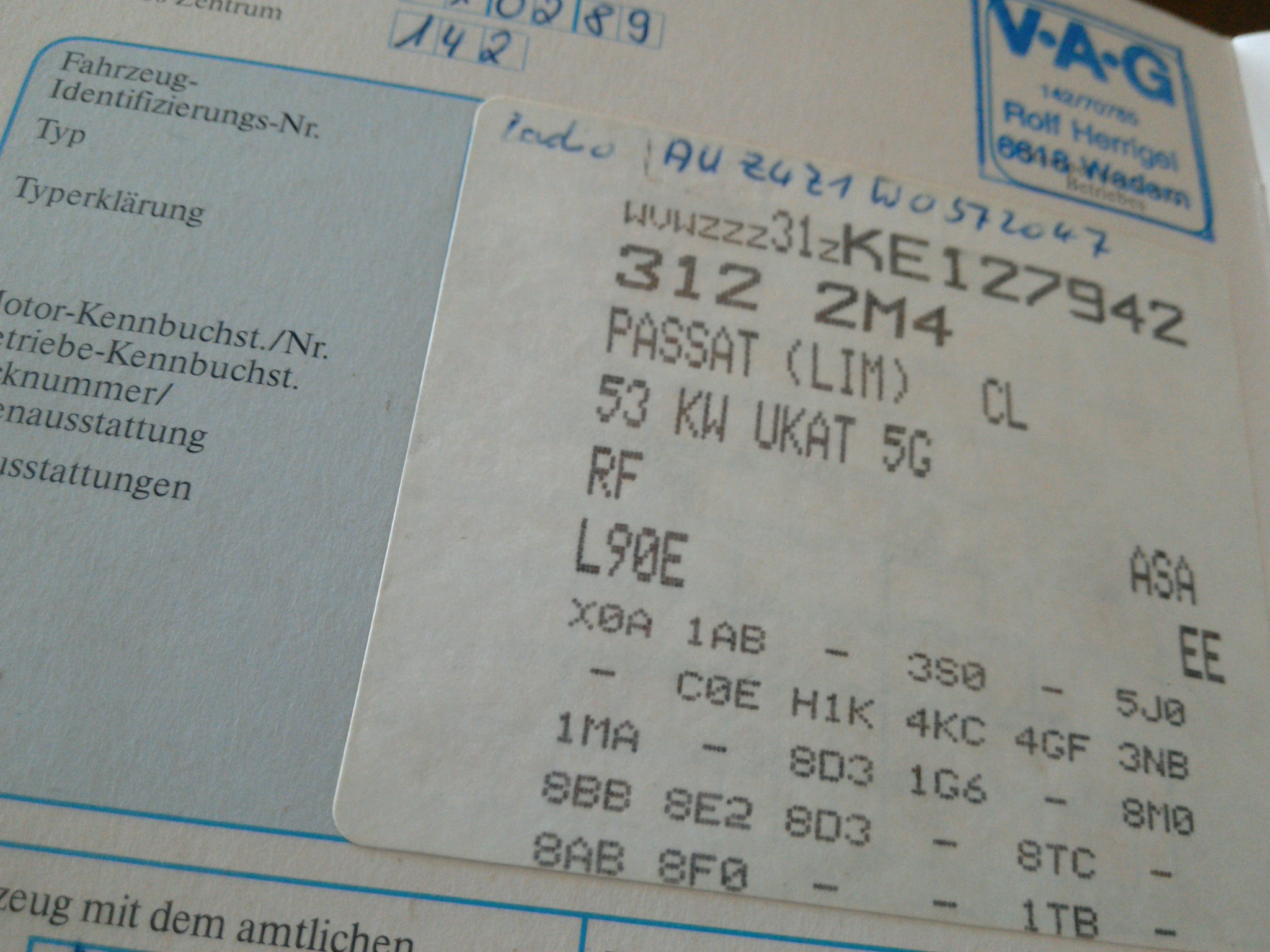Е, погледни си талона де... Отзад в багажника има и стикер, където ги пише тези работи. При Пасат има и RF, който също е с карбуратор.