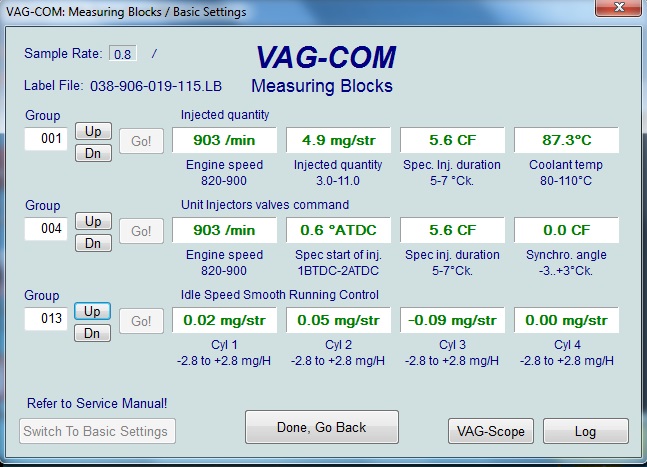Днес закачих колата и показа това: синхронизацията през повечето време стои на 0.0 но от време на време менка на -0.5 , -1.1 , -1.7 и никога не минава 0.0 , друго което ми направи впечатление е , че като колата загря оборотите леко играят както се вижда на една от снимките а горивото се мени от 4.9-6.2 мг.Това съм го виждал и друг път но не му обръщах внимание понеже не винаги го има но със сигурност не е нормално.Скоро ще замеря и компресията.