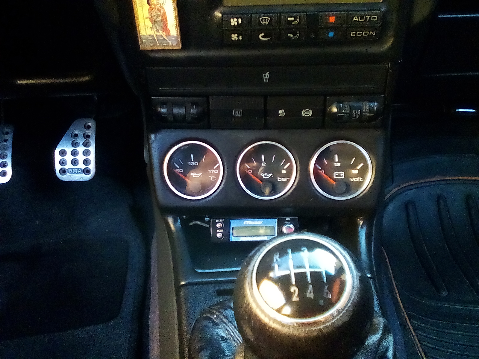 В случая стилът напълно съответства на техническите параметри на колата, долу-горе е 5 пъти по-мощна от обикновен пасат като твоя. Когато имаш набити 15к+лв в силовата му част, е мазохизъм да не следиш определени параметри на двигателя, за което си иска уреди, а те от своя страна - място. Ако имаш идея къде да забутам тия рацерските уреди, и в същото време да могат да се следят, ще съм ти много благодарен. Иначе уредите са широколентова сонда на АЕМ, за налягане на маслото и на турбото, оригинално VDO, серия кок пит хром (много скъпа серия) и съм ги подбирал специално да пасват като визия с оригиналните уреди (също на VDO) на колата.