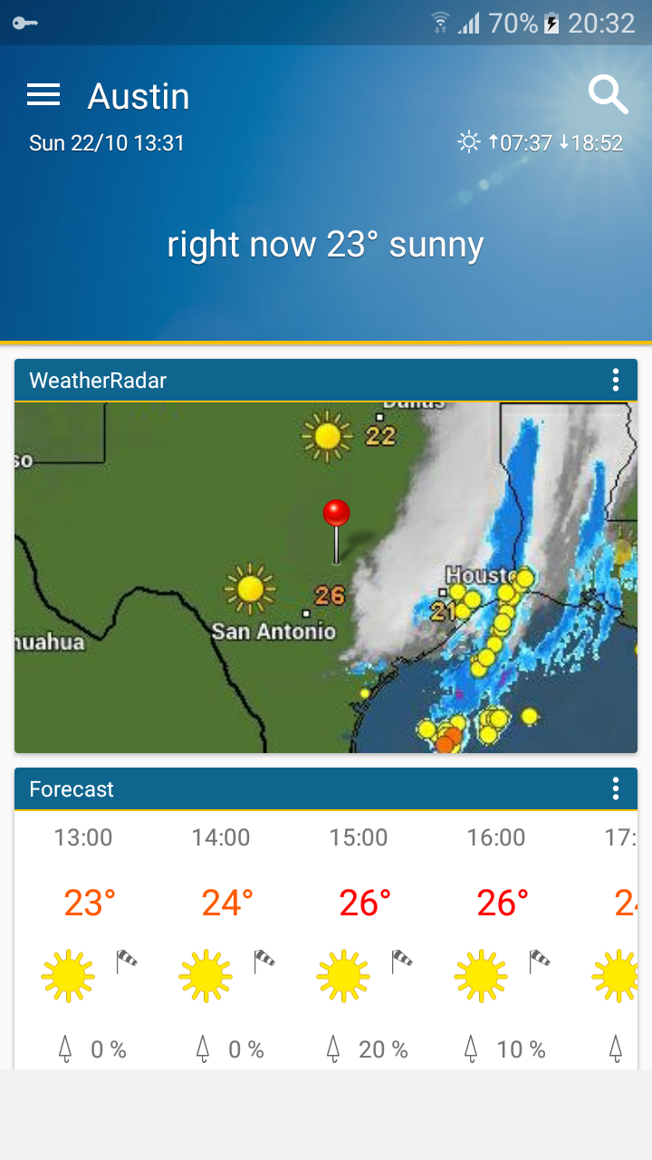 Хм, гледам някаква уеб камера, слънчево си е https://www.earthcam.com/usa/texas/austin/?cam=austin освен да не е на живо тая камера, щото в някакъв сайт го дават, че вали