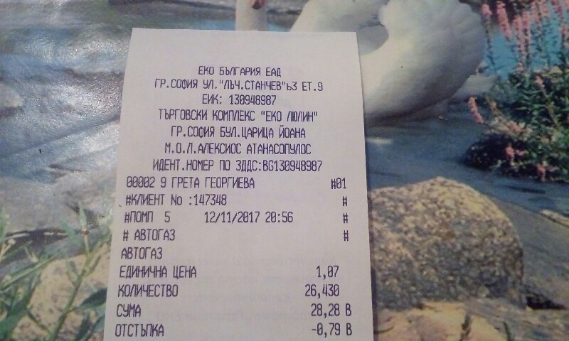 , защото както споменах при предното зареждане на същата бензиностанция което е било на 25.10 със същата карта получих 10ст. отстъпка за литър газ. Заредих и бензин А95 за който получих отстъпка от 7ст. на литър което е ОК.