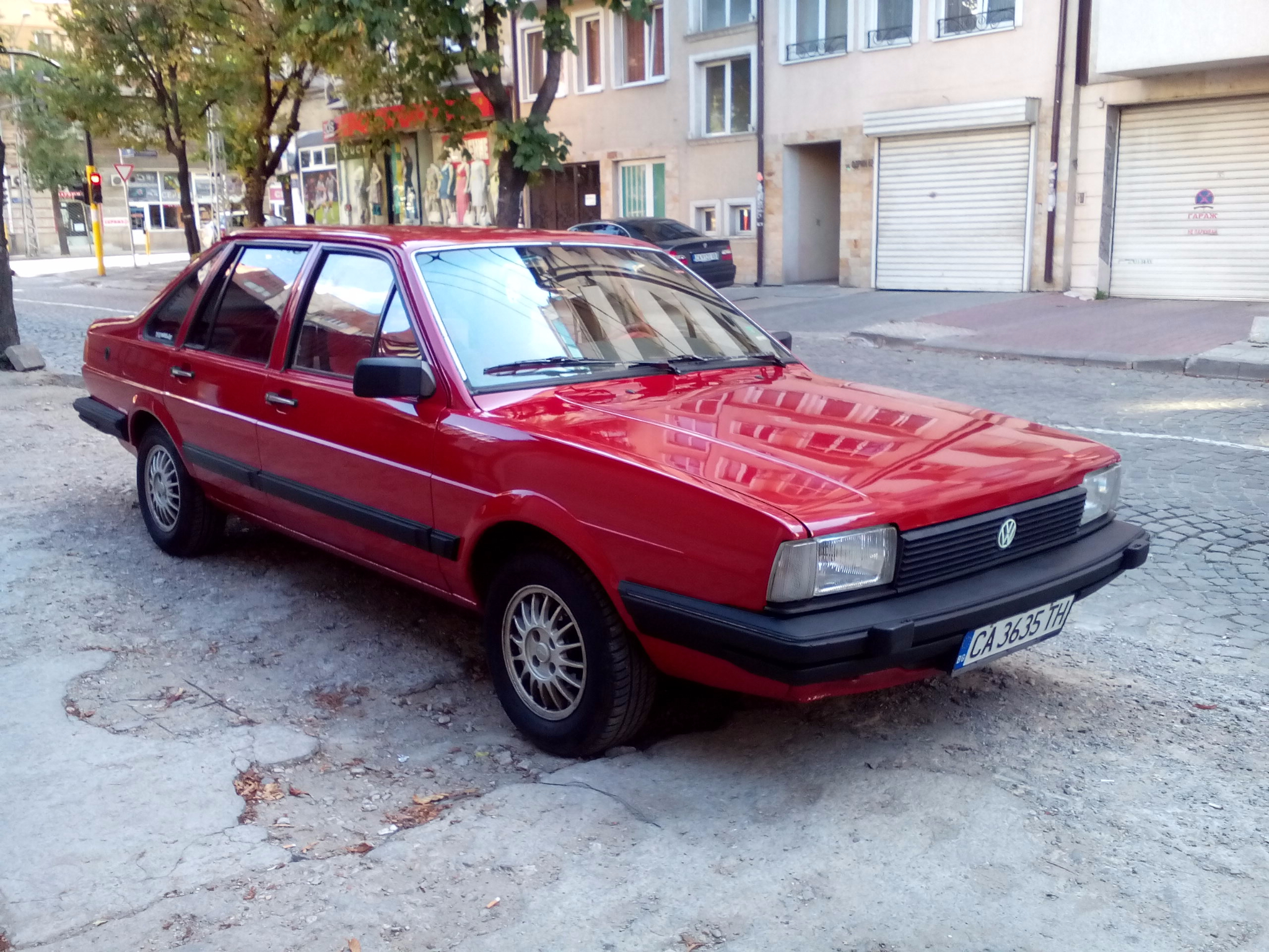 Супер е колата и цвета е добър ! Много рядко се срещат вече Сантана на пътя . Колега , като боядисва колата , защо не премести зареждачката на газта от задния калник ?