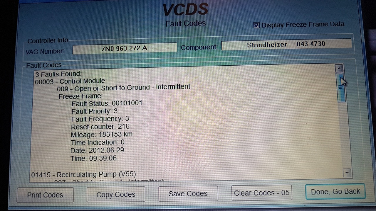 Досега печката винаги си работеше нормално, независимо от тази записана грешка. С VCDS съм я чистил, но не след дълго отново я записва. Принципно печката се пали винаги автоматично при старт на двигателя и външна температура под 4,5 градуса. Днес за пръв път ми направи впечатление, че колата загря много бавно, опитах се да включа печката с бутон от таблото, но веднага се изключваше. След като паркирах пробвах с дистанционното и запали, след което си работеше нормално 15мин. /толкова съм и задал/. След това обаче на няколко пъти я пробвах докато карах и в някои моменти се палеше, в други не.