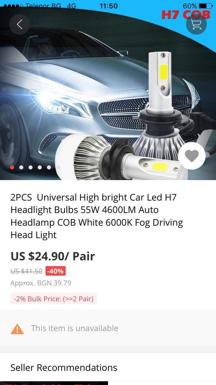 Тези са като свещ във фар. Освен това избягвайте СОВ чиповте, те са ниско качествени. Търсете крушки със чипове на големи производите ли като филипс крии, самсунг или в краен случай сеул чипове. Има много качествени крушки ,но са си на цена. Тези от алиекспреса на на 80% боклуци. Там иска много търсене за да попаднете на читави .