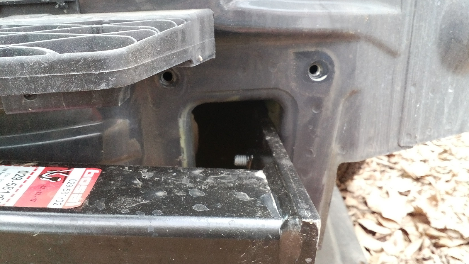 премахва се оригиналната основа на бронята, която е монтирана с болтове към задната престилка, теглича влиза в задните кухини и се захваща странично с по два болта от всяка страна