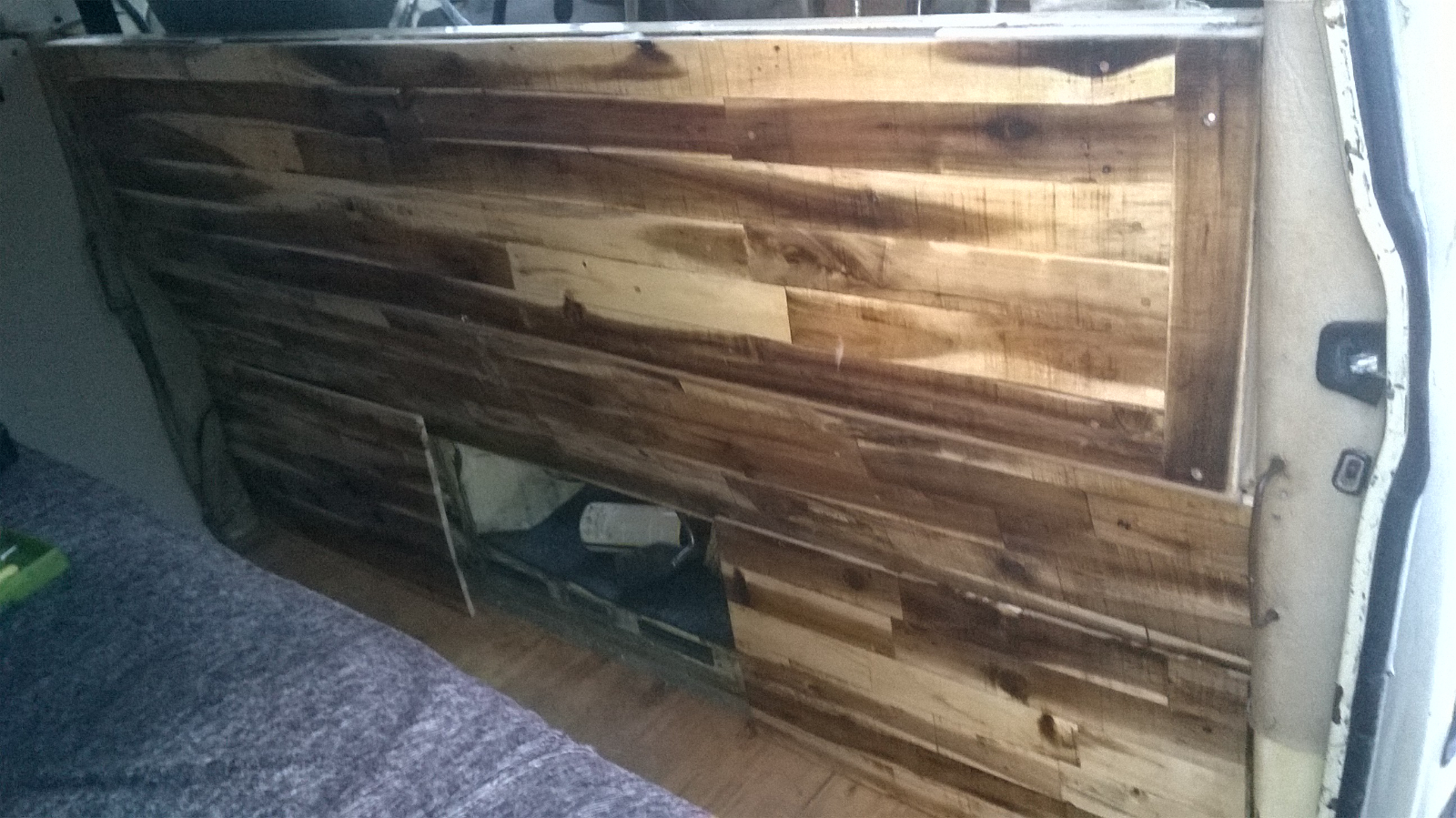 Тая идея с дървениите...виждал съм бусове с дърво вътре направени и нещо не ме грабва. Обикновената дървесина много бързо поема влага, цапа се, променя си цвета, започва да скърца.