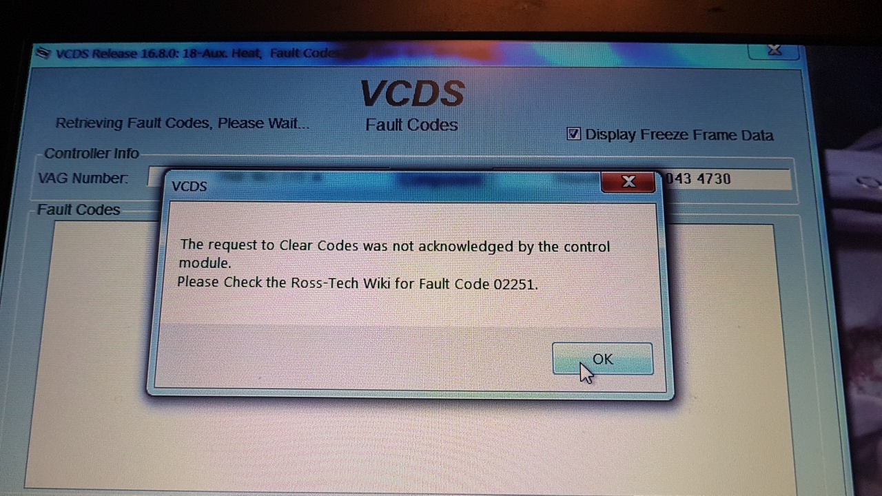 От известно време при тест с VCDS виждам записана грешка в модул Auxiliary Heating :