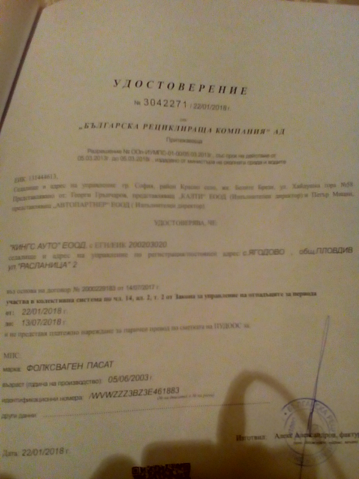 Веднъж съм ходил за транзитки в кат Пловдив и все едно се върнах в 90- те години (това преди 2 г.) или поне такова усещане ми е останало. Мизерия, нацвъкани незнайни бутчици отпред с мургави господа/жи вътре, ред никакъв, опашки, "връзкари" дето все най отпред се бутат и си говорят на ти с лелките на гишетата. И в столицата беше така ама се очовечиха нещата. За еко таксата ми дадоха освен касовата и два листа А4 с някви данни на рециклиращата фирма. Те май са само 2-3 лицензирани фирми за цялата страна ( далеч съм от мисълта, че са случайни) .Ето как изглеждат документите от преди месец и нещо