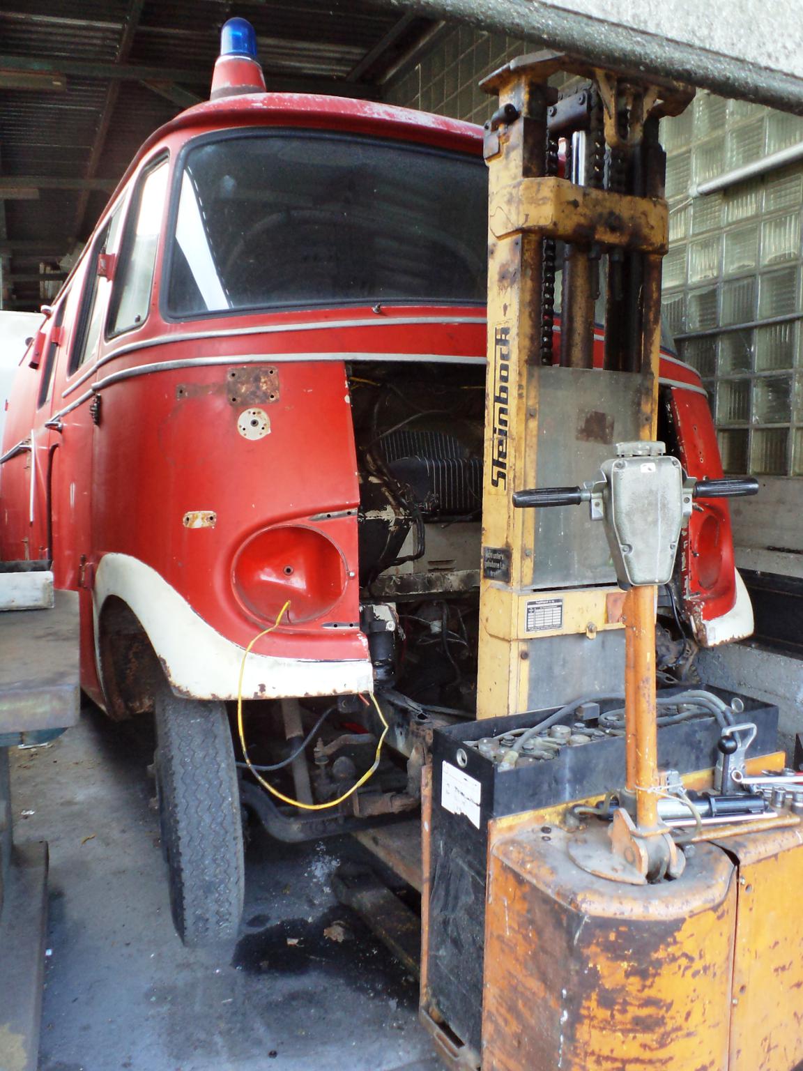 Пожарна кола, когато го снимах тъкмо бяха свалили мотора, за да почне реставрация на купето.