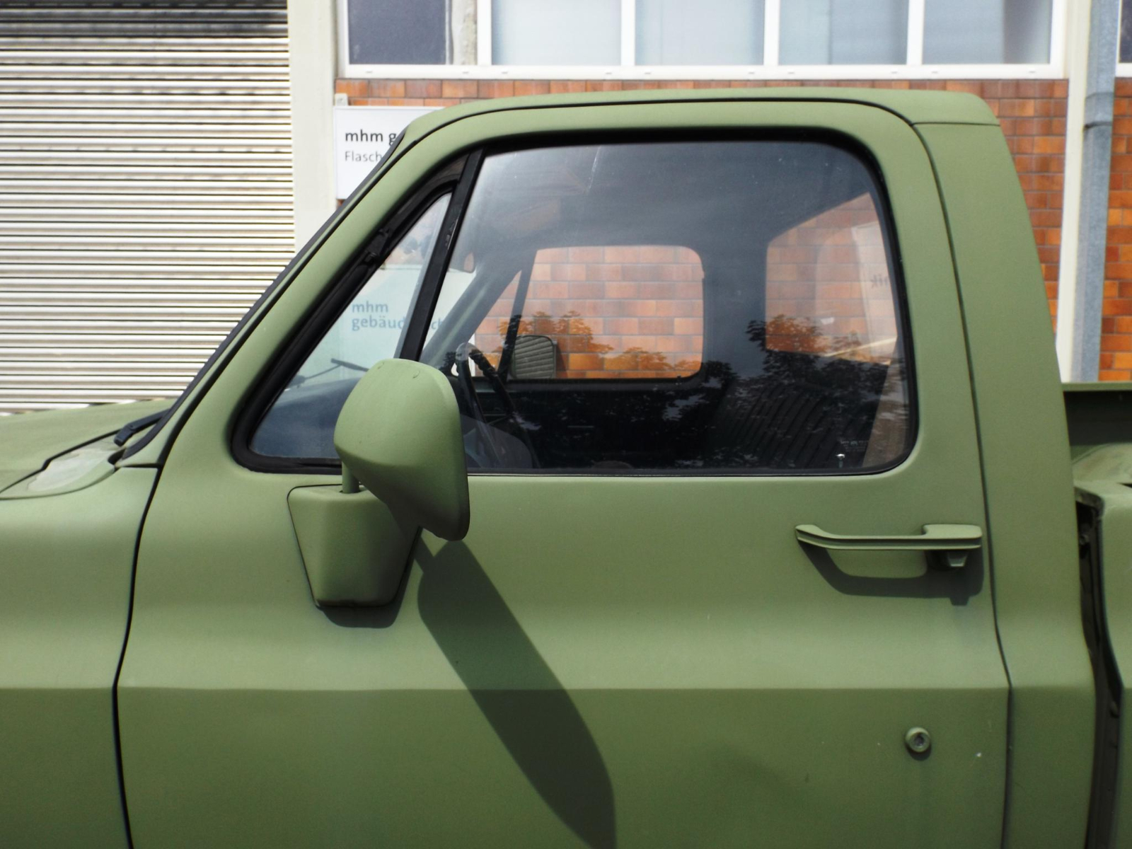 Много добре, Unimog 1300 L, бил е във Бундесвера, немската армия. Естествено високопроходим. малко смешно стои фургона с това скосяване отзад, ама междуосовото разстояние е малко и няма друг начин!