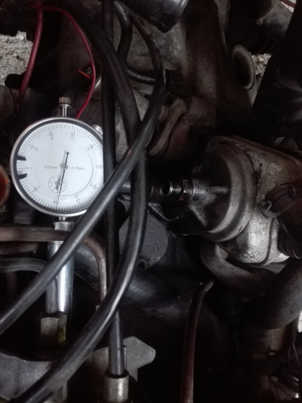 Тези дни реших да си направя настройка на ъгъла на впръсване на въпросният двигател. Имам си комплект с микрометър за мерене на хода на плунжера , та ....така.