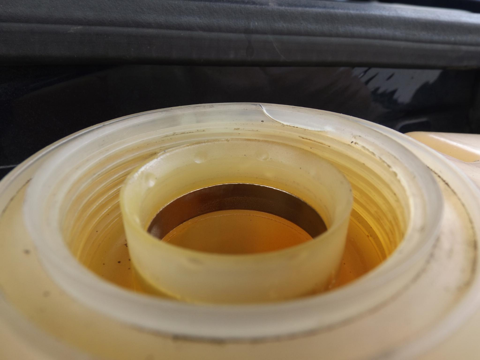 При последното доливане преди 2 дена забелязах повреден ръб на разширителния съд, та въпросът ми е дали има връзка със загубата на охлаждаща течност? Ето снимки на мястото: