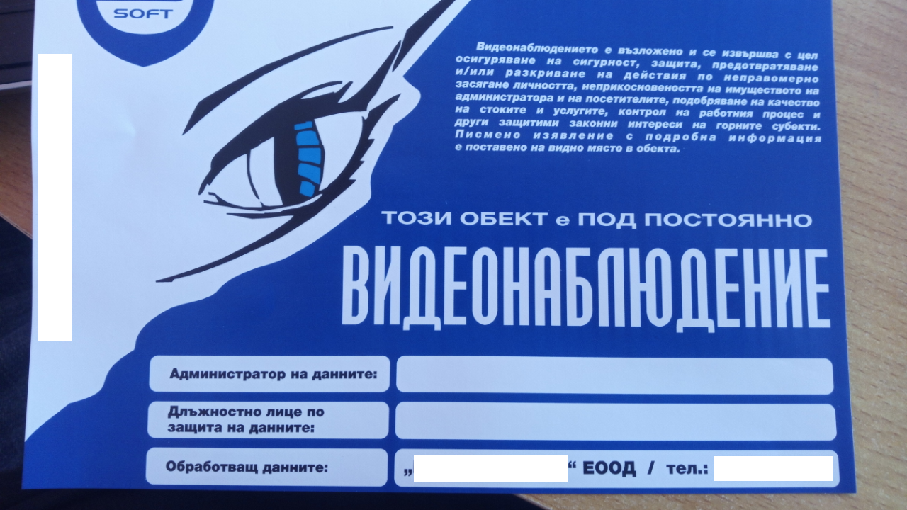 Слага се табела, като задължително се вписва кой е администратор на данните и към кого да се обръща лице, което не желае да бъде снимано. Т.е. минавам, виждам камери и трябва на табелата да пише кой може да ми изтрие данните. Имам право по всяко едно време да изискам информацията да бъде премахната.