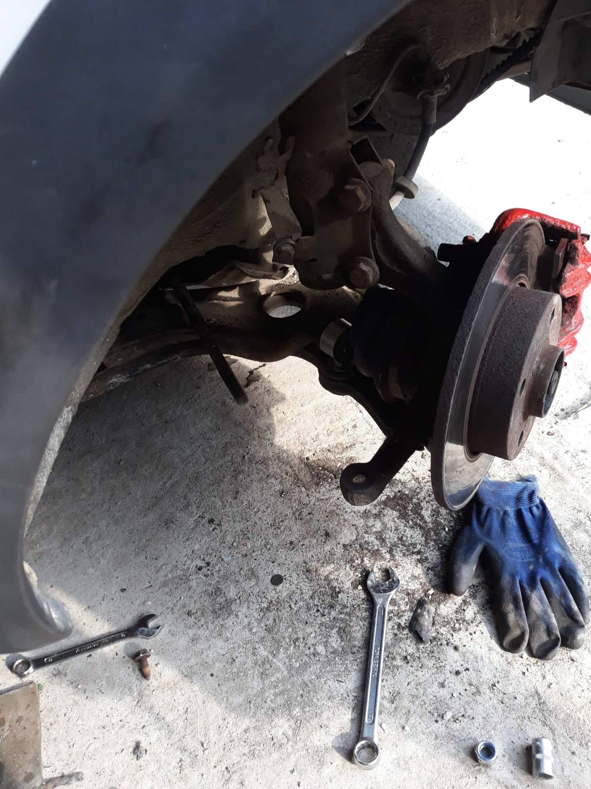 Десния накрайник имаше луфт,левия по малко,но беше тръгнал предпочитам да ги сменя на едно.С един приятел успяхме да го развием с тръбен ключ.Всичко беше сменено утре остава да мине стенд.