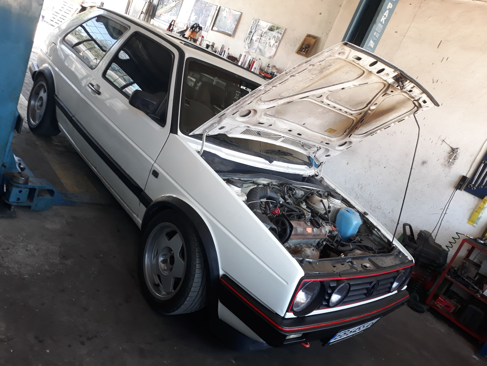 Днес имах възможност да закараме голфа до сервиза на един приятел да сменим ангренажа и водната помпа.И понеже ръчната я нямаше така и така бях в сервиза и реших и нея да направим и какво стана мислех,че са само жилата ама не:цилиндърчета,жила,пружинки и от едната страна лагера.