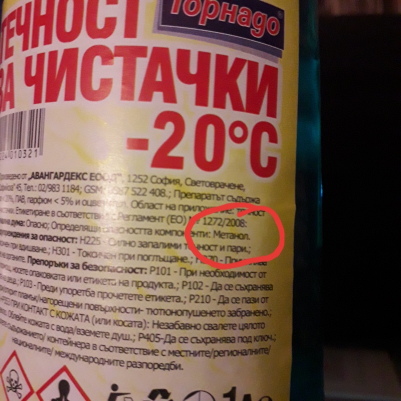 А колко е концентрацията на метанола, няма да питам. Не пръскайте, ако возите деца.
