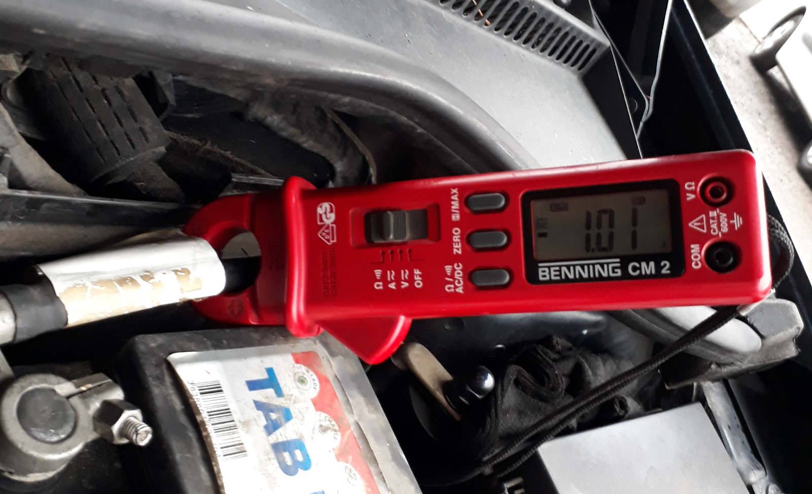 Здравейте колеги. От известно време (особено като застудя) забелязвам лееко затруднено палене на колата. Не че няма да запали, но се замисля и светват лампата за ESP и ABS, което преди в едно нормално палене не се случваше. Та реших да направя едно замерване на акумулатора, алтернатора и тоците по колата. Акумулатора е закупен преди 2 години и е марка ProKraft 74 Ah., необслужваем, произведен 2016 г. Момчетата при които отидох направиха замерване и направи впечатление висока консумация след заключване на колата. Показанията се меняха между 0,98 А до 1,01 А