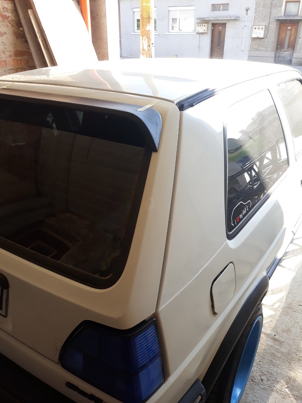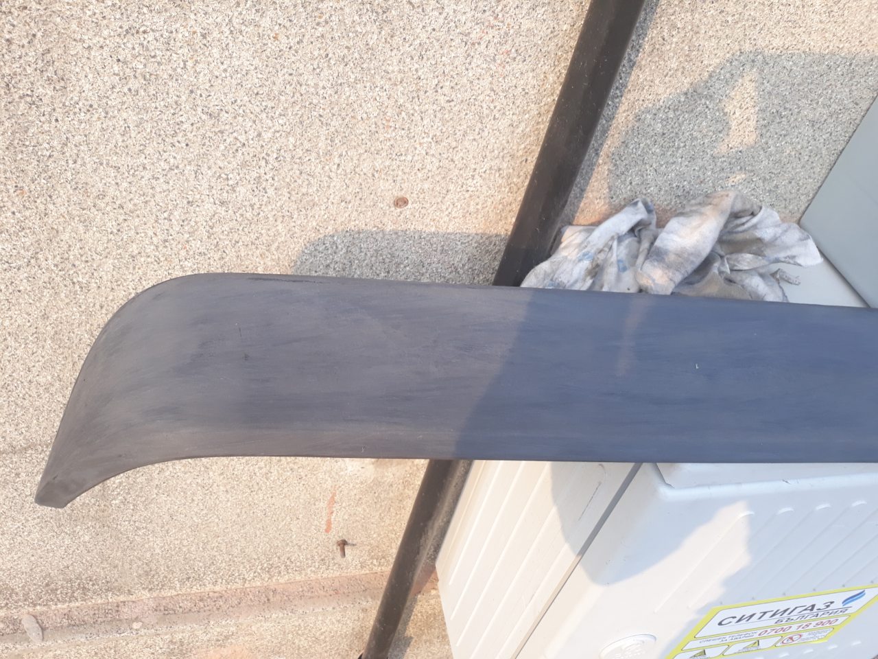 Взех си един спойлер по-широк от този,който е на колата.Беше в лошо състояние,но с малко шкурене и нова боя стана добре.