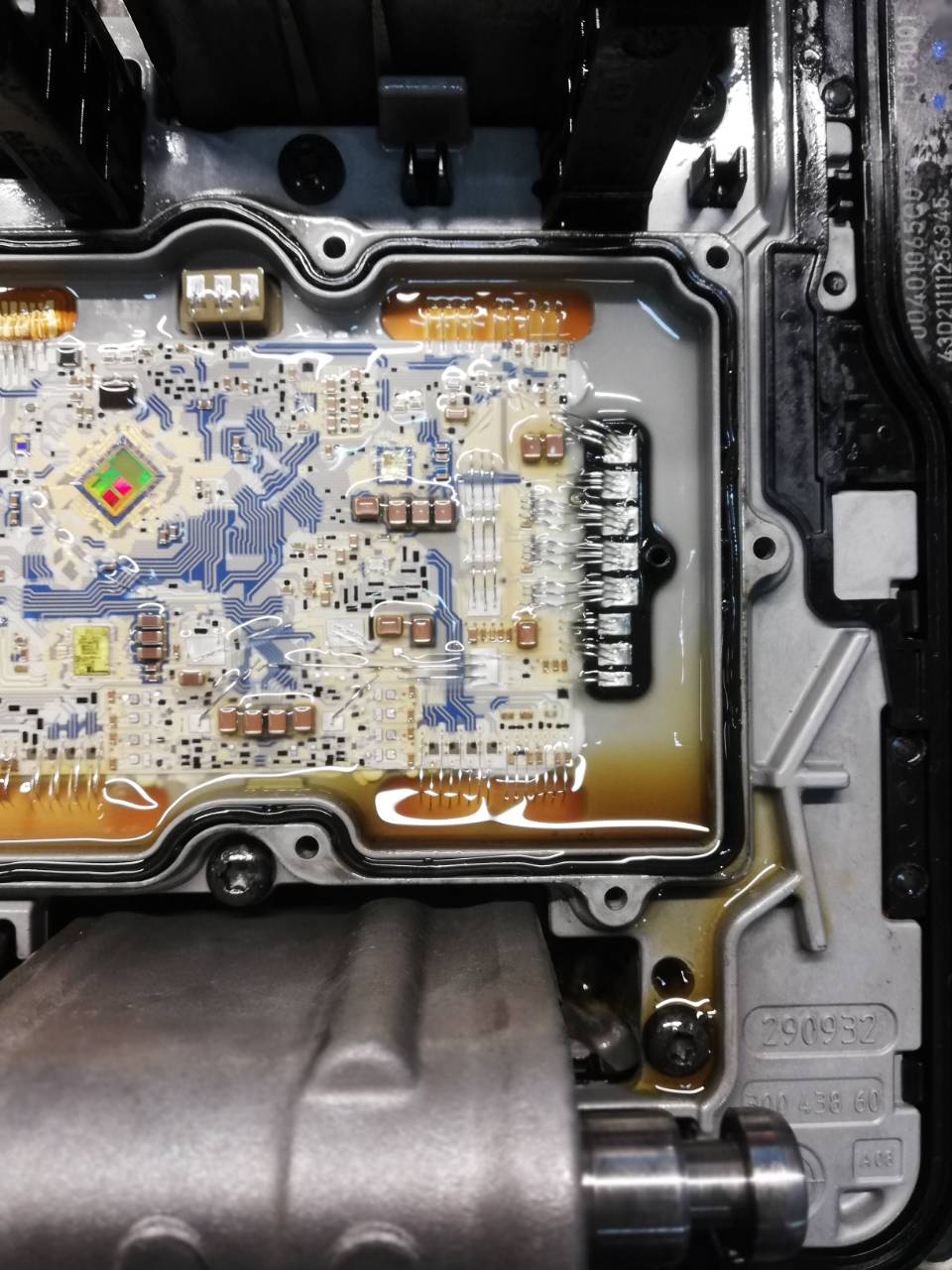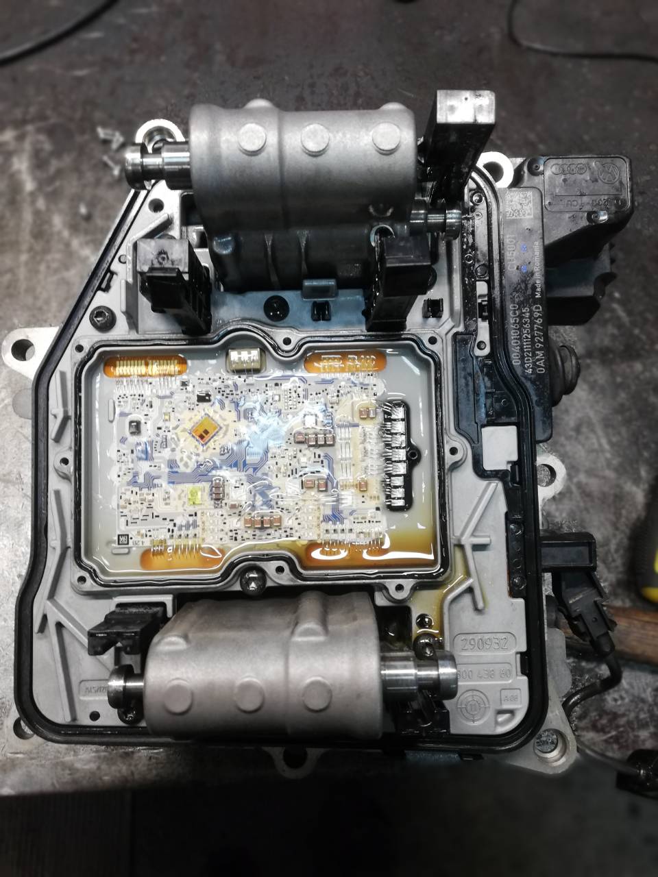 Точно тази кутия със сухи съединители (има и 7DSG с мокри) се прецаква мехатроника заради пропуск на масло в електрониката.