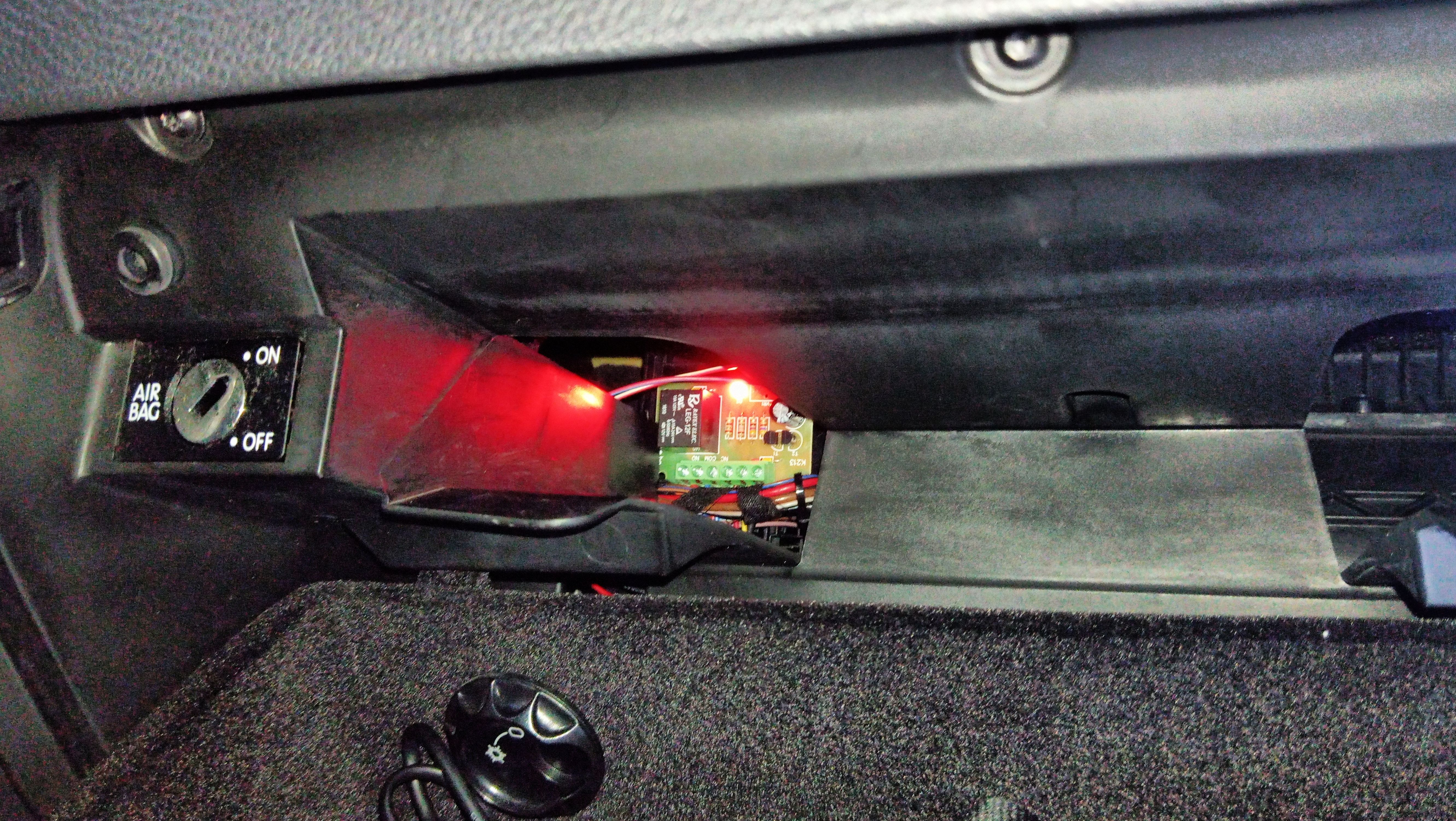 Въпреки коригирането на окабеляването на мултимедията, тя все пак продължаваше да консумира ток, а в зимния период или при няколкодневни престои това си беше проблем. Окончателното решение бе добавянето на модифициране време-реле, което разпадаше захранването 30 мин. след изваждането на ключа. Скрих платката зад жабката, като при отварянето и дори можех да я наблюдавам.