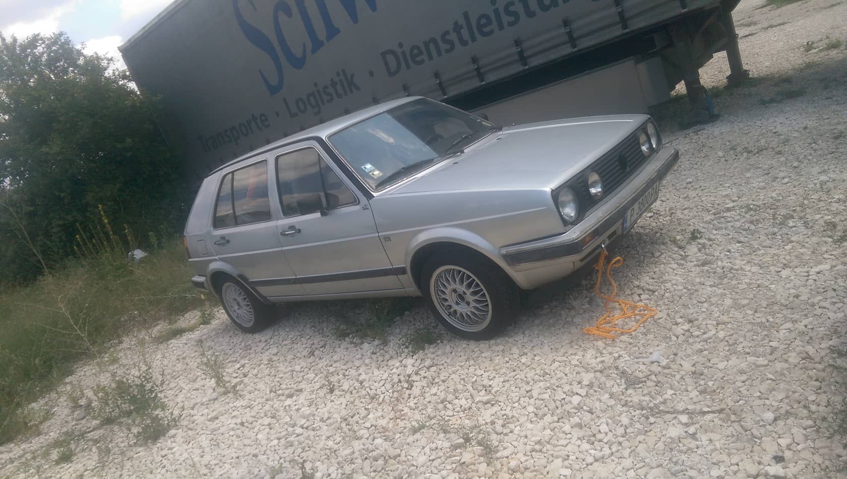 Здравейте съфорумници,казвам се Димитър от Варна ,на 16 години.Тъй като от много време си мечтаех да си взема голф 2 с цел пълна реставрация ,на скоро станах собственик на такъв с двигател 1,8 90к.с. карбуратор,четиривратов,ел. пакет,бордови компютър ,хидравлика, ръчен смукач,Карат изпълнение 1986г. Целта ми е да оставя колата в съвсем класически вид,с лек свеж привкус извлечен от към окачване,джанти и интериор.Поставил съм си срок до бала ми който е след 2 години,до тогава видно от заглавието трябва да направя един нов в пълния смисъл ,голф 2. Съвсем случайно попаднах на колата тъкмо след като бях решил ,че няма да излезне нещо читаво.Уговорих среща с продавача и след седмица бяхме с баща ми в София на оглед,супер много ми хареса много запазен автомобил със сервизна книжка,фактури от автокъщата от 1986г,добра музика,лети джанти абе кукла :th_up .Проблема беше ,че не палеше,момчето каза ,че е от карбуратора,сменял е два и последният е от ауди 80 мисля.Както и да е ,това не ме спря ,платих си платформа и газ към сигурен паркинг в Девня ,понеже един Камаз я ударил леко докато я придърпват в София към по-широко и удобно място за пътната помощ и вратата така се огъна ,че не можеше да се затвори ,та днес отидохме с баща ми до Девня да сменим вратата и да я издърпаме във Варна на сервиз защото скоро трябва до се ходи до кат за смяна на талони и регистрация.Това е от мен за сега ще пусна някоя друга снимка ,да добиете представа за колата ,надявам се скоро да има развитие по колата съответно и по темата.