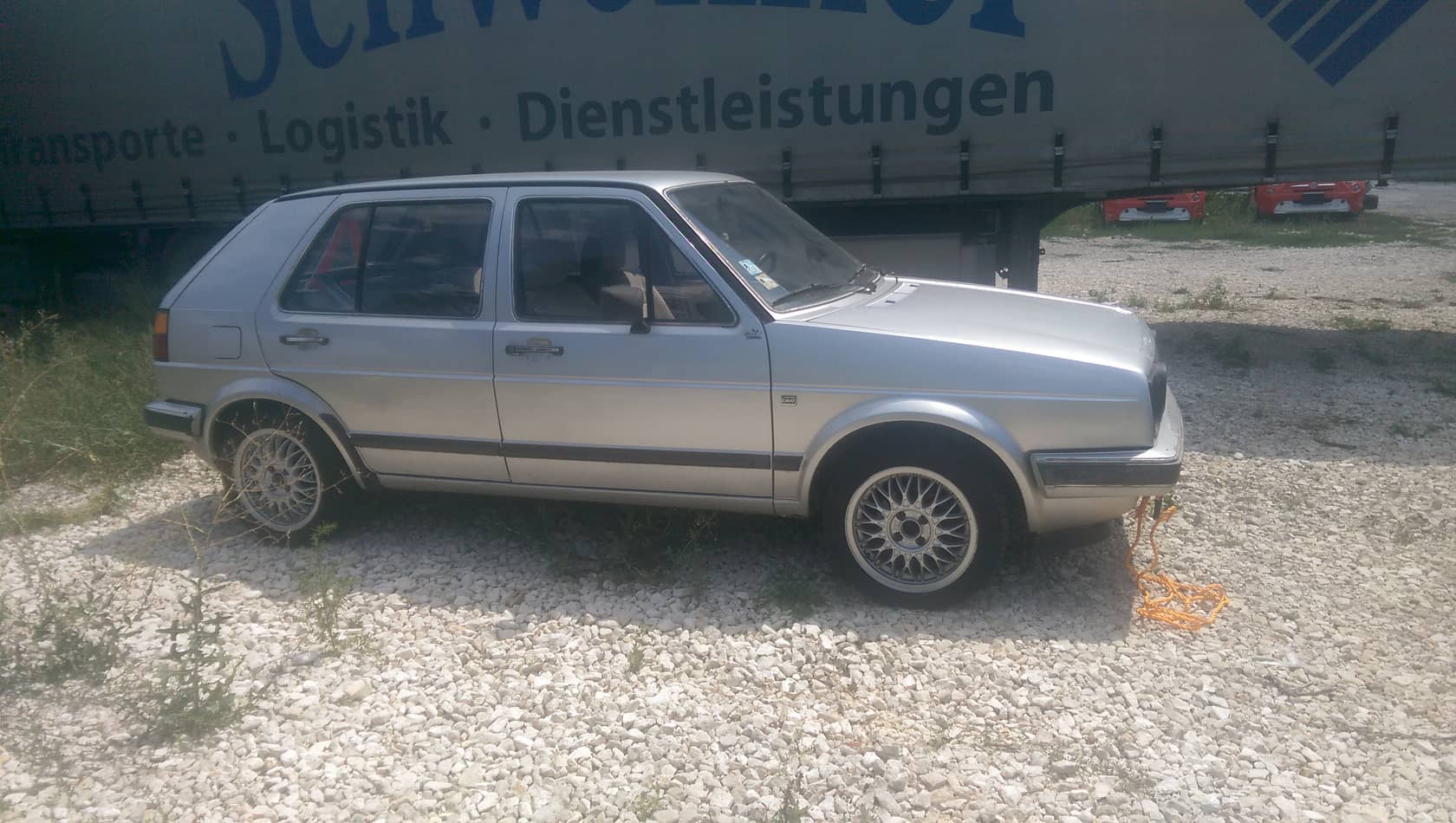 Здравейте съфорумници,казвам се Димитър от Варна ,на 16 години.Тъй като от много време си мечтаех да си взема голф 2 с цел пълна реставрация ,на скоро станах собственик на такъв с двигател 1,8 90к.с. карбуратор,четиривратов,ел. пакет,бордови компютър ,хидравлика, ръчен смукач,Карат изпълнение 1986г. Целта ми е да оставя колата в съвсем класически вид,с лек свеж привкус извлечен от към окачване,джанти и интериор.Поставил съм си срок до бала ми който е след 2 години,до тогава видно от заглавието трябва да направя един нов в пълния смисъл ,голф 2. Съвсем случайно попаднах на колата тъкмо след като бях решил ,че няма да излезне нещо читаво.Уговорих среща с продавача и след седмица бяхме с баща ми в София на оглед,супер много ми хареса много запазен автомобил със сервизна книжка,фактури от автокъщата от 1986г,добра музика,лети джанти абе кукла :th_up .Проблема беше ,че не палеше,момчето каза ,че е от карбуратора,сменял е два и последният е от ауди 80 мисля.Както и да е ,това не ме спря ,платих си платформа и газ към сигурен паркинг в Девня ,понеже един Камаз я ударил леко докато я придърпват в София към по-широко и удобно място за пътната помощ и вратата така се огъна ,че не можеше да се затвори ,та днес отидохме с баща ми до Девня да сменим вратата и да я издърпаме във Варна на сервиз защото скоро трябва до се ходи до кат за смяна на талони и регистрация.Това е от мен за сега ще пусна някоя друга снимка ,да добиете представа за колата ,надявам се скоро да има развитие по колата съответно и по темата.