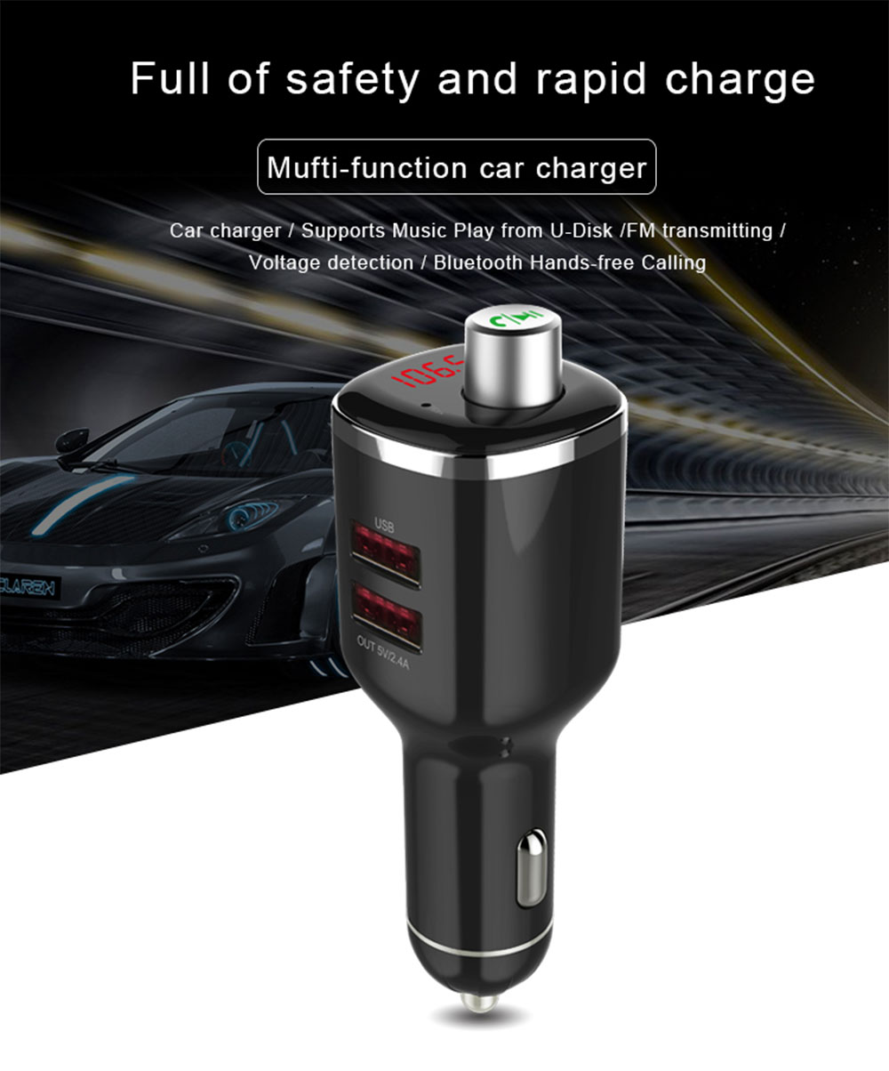 CDEN Car FM Transmitter Bluetooth Hands-free Call Kit Car MP3 Player U Disk Music Dual USB Car Charger