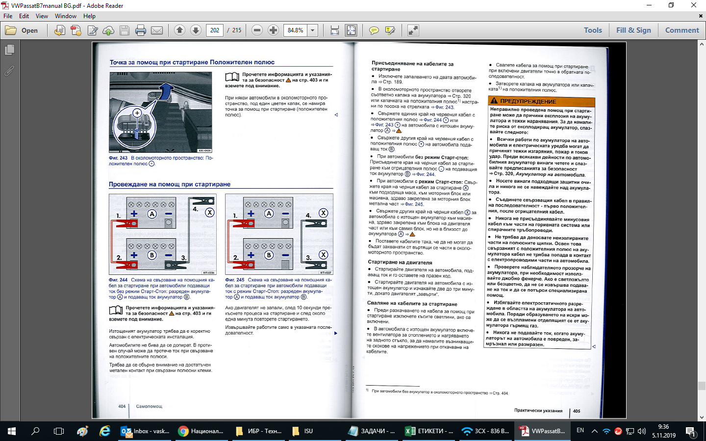 Това е ръководството на колата. Само, че тук както писах по-горе е описано как се подава ток от друг автомобил, а не със зарядно. За зареждане със зарадно препоръчват да се ходи в оторизиран сервиз на VW