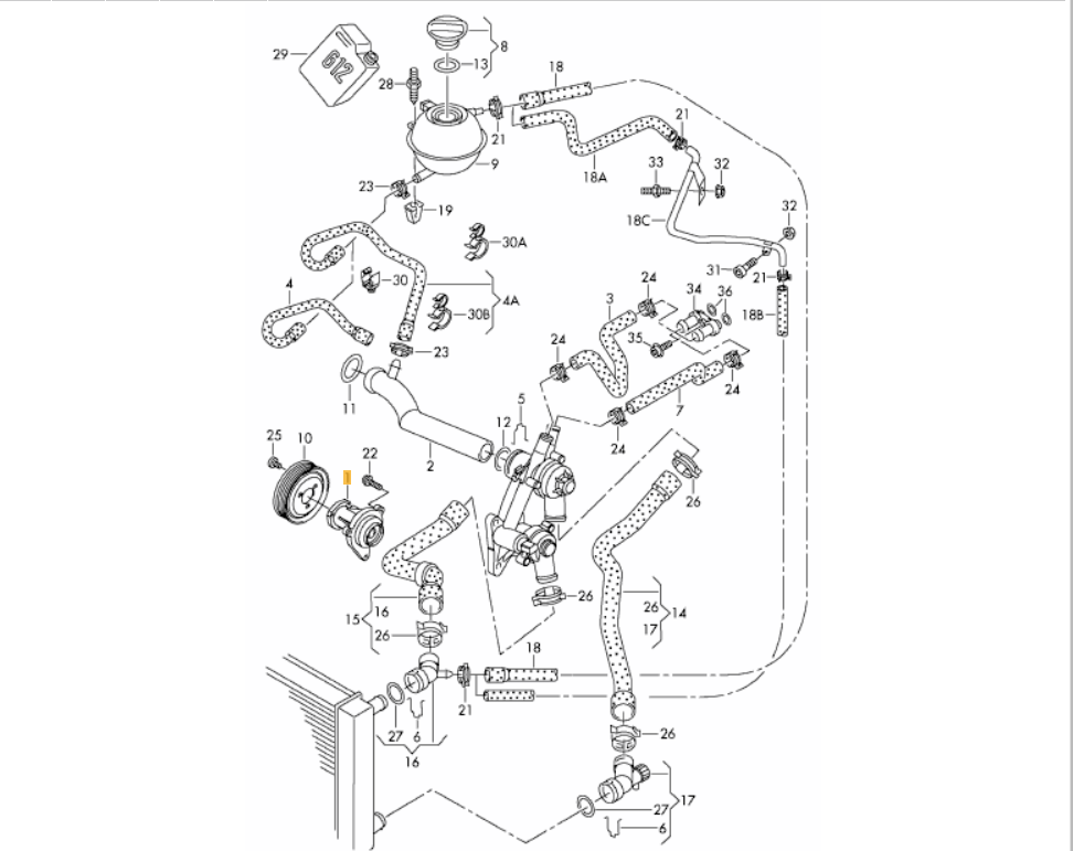Това е схемата на охладителната система на Polo 9N 1,2 - 3-cylinder+AZQ,AWY,BMD,BME.