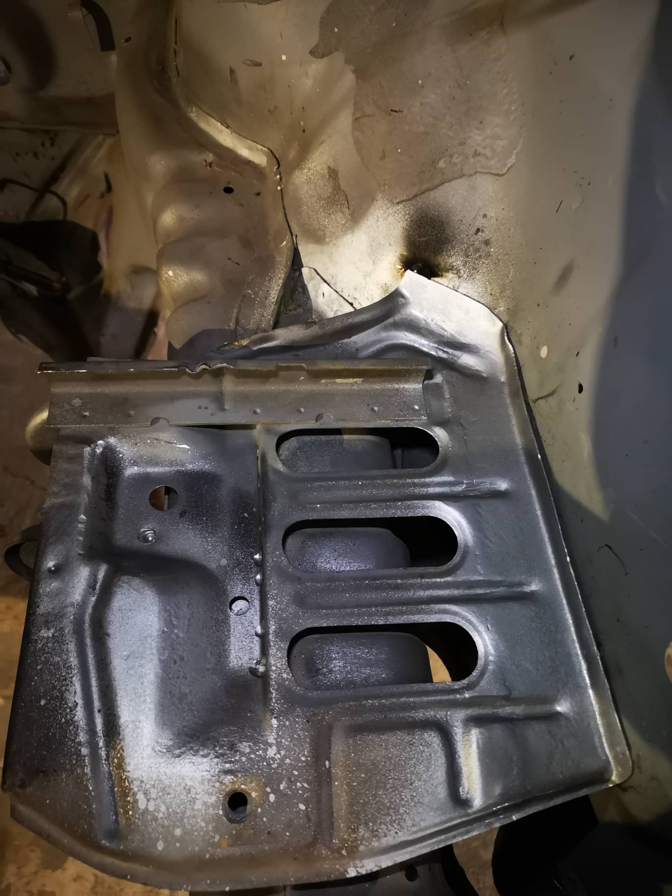 Стойката на акумулатора дойде бонус към левия рог, който сменяхме, че имаше поизгнило, но пък беше изрязана кофти през средата , та се наложи да си я възстановим до оригиналния вид, мисля че се получи добре