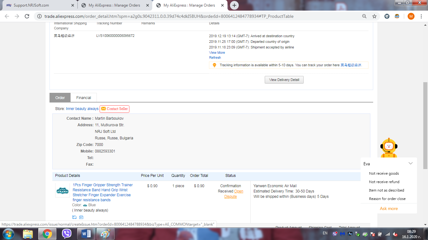 Днес пристигнаха не една а две пратки поръчани на 29.12.2019.