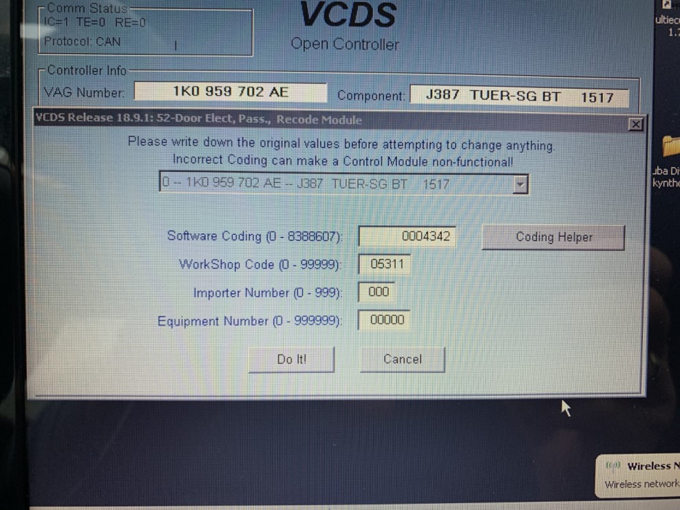 Ми следвах логиката на това, което видях при теб и което беше въведено при мен. Т.е шофьорската ми е 0000245 на пасажера е направих 0000244, като работи всичко - плафона долу на вратата подгрев на огледалата, прозореца се вдига както трябва и най-важното мигачите на огледалата светят както трябва. Тези две кодировки може да се ползват за коли с ЛЯВ волан.